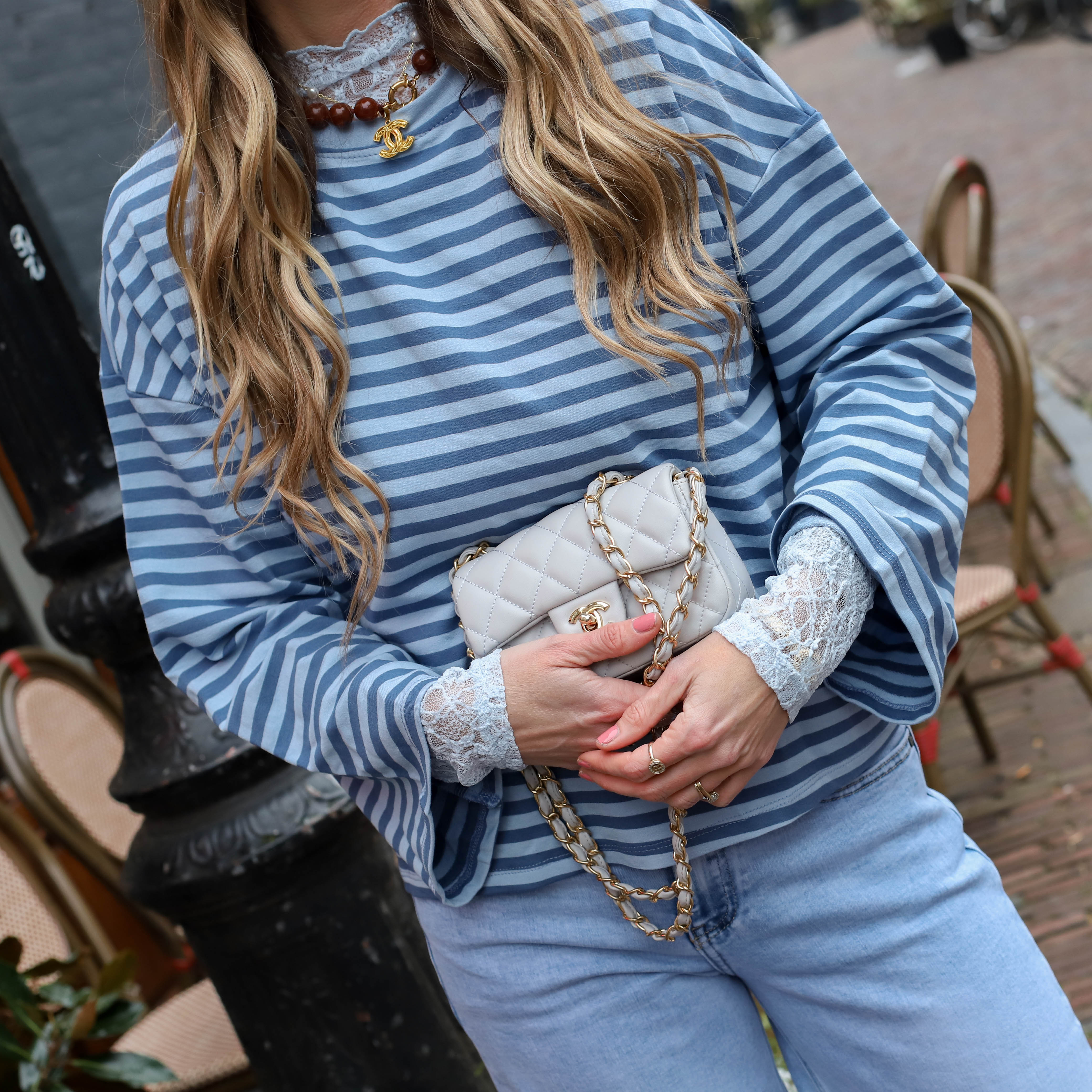 Deze Noor Streep Top is de perfecte mix van een tijdloze klassieker en een moderne pasvorm. De top is uitgevoerd in een stijlvol blauw streeppatroon en heeft een baggy fit met verlaagde schouders voor een on-trend oversized silhouette. Dankzij de fijne materiaalmix met stretch draagt deze top heerlijk comfortabel gedurende de hele dag.