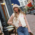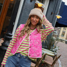 Dit Paisley Reversible Gilet is de perfecte veelzijdige toevoeging aan je garderobe. Het gilet heeft een zachte teddy-structuur aan de ene zijde en een stijlvolle paisley-print aan de binnenzijde, waardoor het volledig omkeerbaar is. Met de handige knoopsluiting en de subtiele "Lovely" patch op de borst creëer je moeiteloos een speelse en on-trend look.