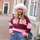 Deze Polo Trui Stripe is de ultieme combinatie van preppy en streetwear! De trui heeft een mega chille oversized fit en valt direct op door de brede banen en de klassieke kraag met knoopjes. Dankzij de zachte, fluffy textuur en de verlaagde schoudernaden creëer je moeiteloos die gewilde baggy look die perfect is voor een koude dag. Combineer hem met een wide leg jeans voor een on-trend outfit die zowel comfy als super fashionable is.