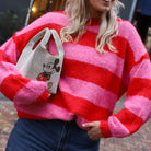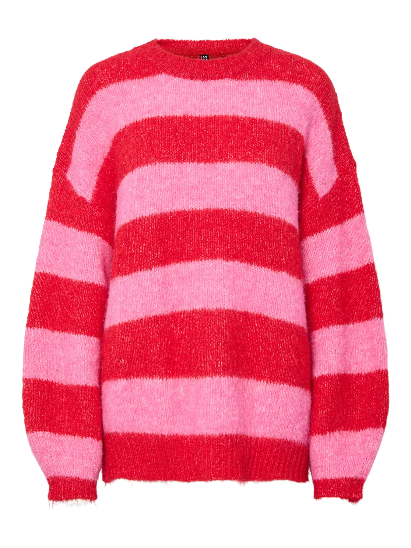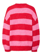 Deze PC Rasmine Oneck Knit is een levendige en comfortabele trui die kleur geeft aan elke outfit. De trui is uitgevoerd in een opvallend gestreept patroon van helderrood en zachtroze, en heeft een pluizige, harige textuur voor een knusse uitstraling. Het ontwerp met een klassieke ronde hals en een relaxte pasvorm zorgt voor een moderne en warme look, ideaal voor de koudere dagen.