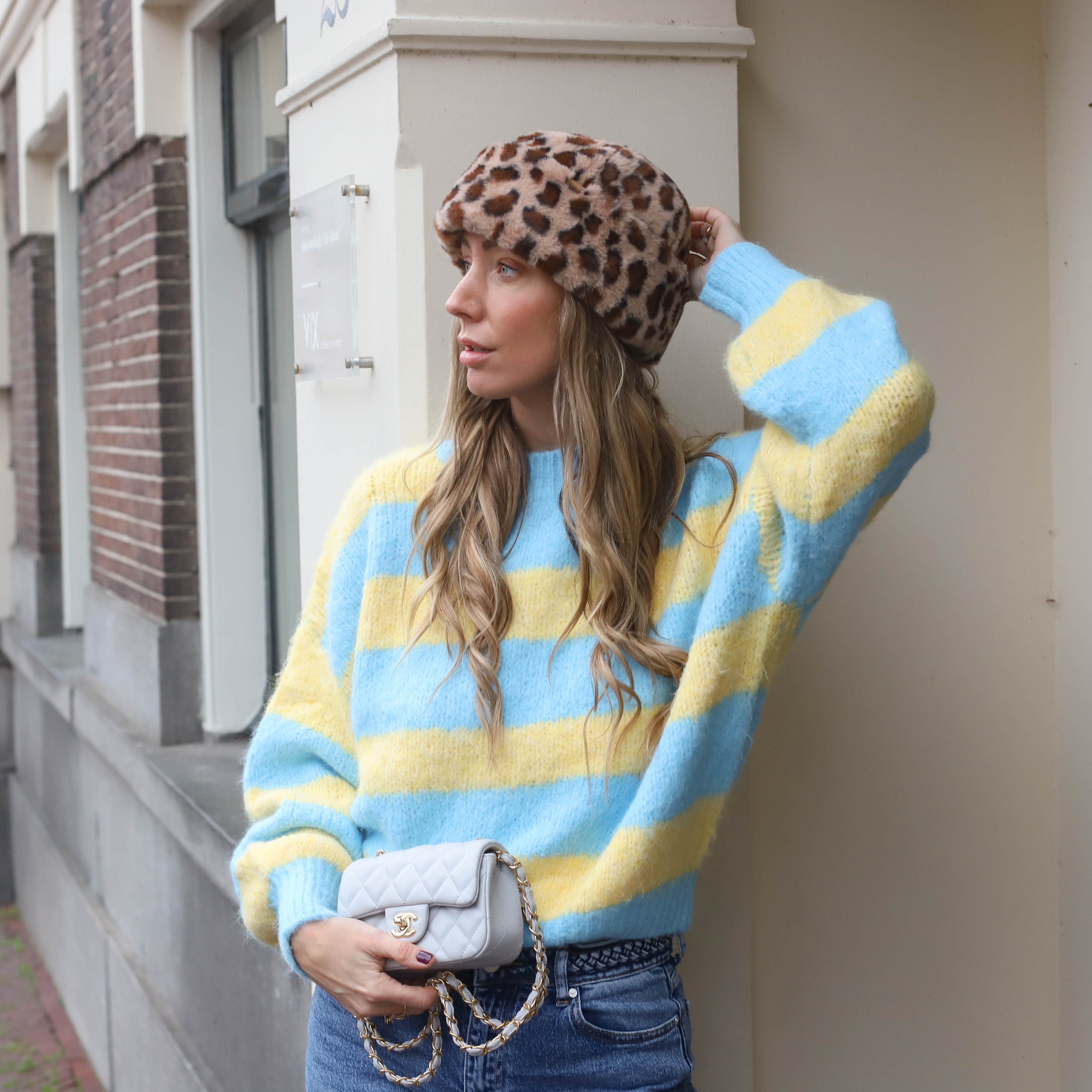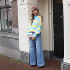 Deze Gestreepte Gebreide Trui is een zachte en opvallende toevoeging aan je garderobe, perfect om kleur en een knusse textuur te combineren. De trui is uitgevoerd in brede, horizontale banen in vrolijke blauwe en gele tinten. Met zijn grove breisel, ronde hals en extra wijde pasvorm is dit de ideale oversized trui voor een comfortabele en stijlvolle look.