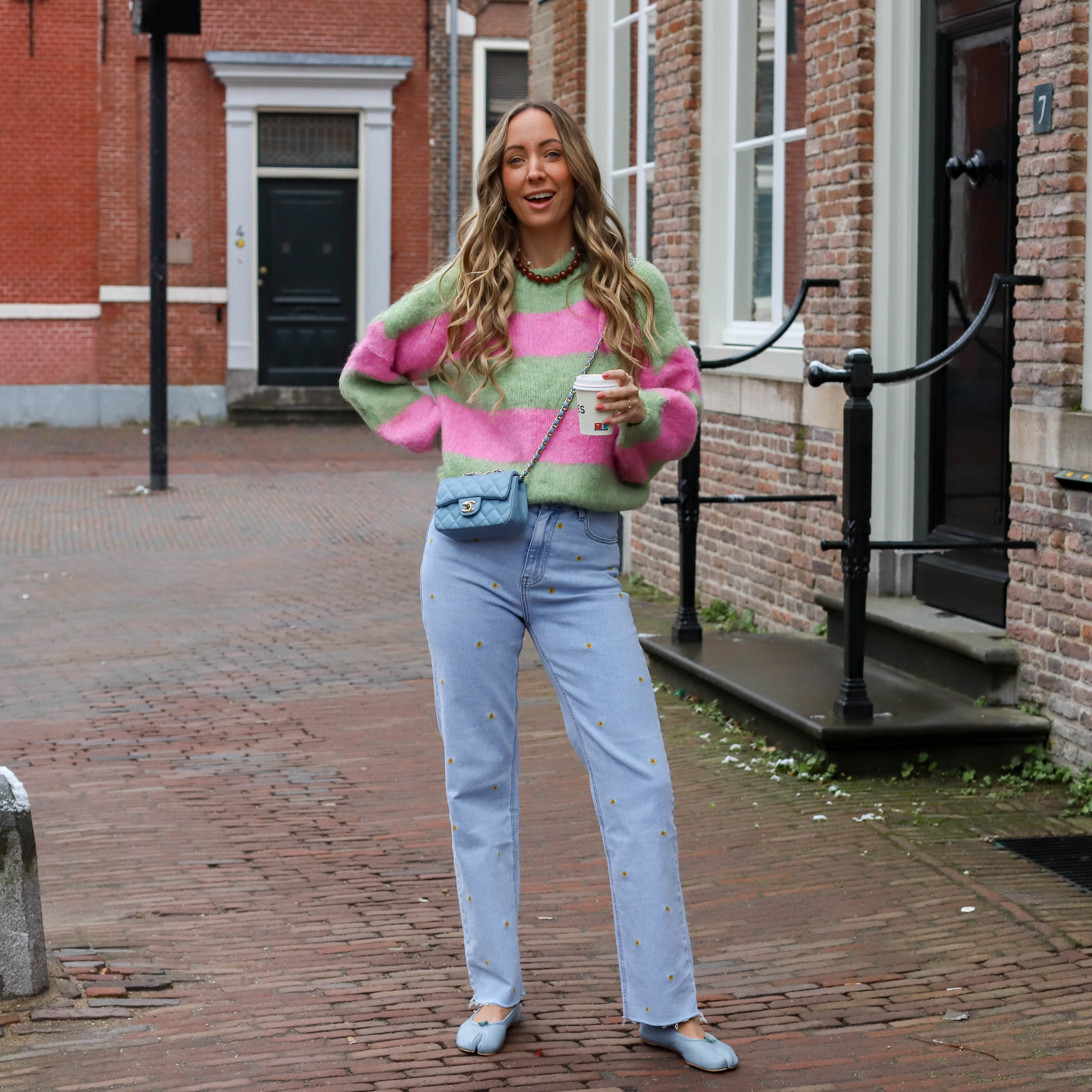 Oversized streep sweater mint roze