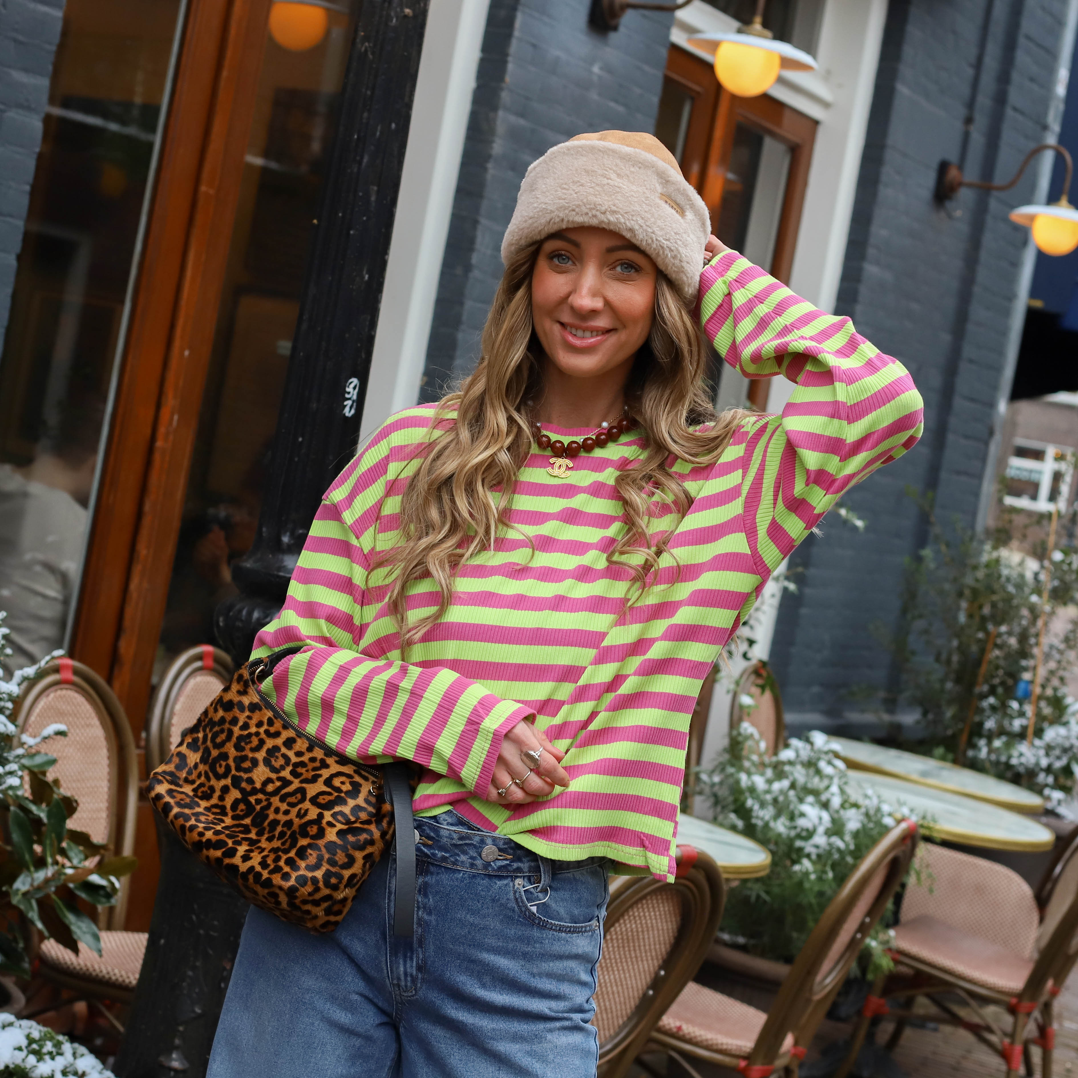 Lucia streep top lime roze