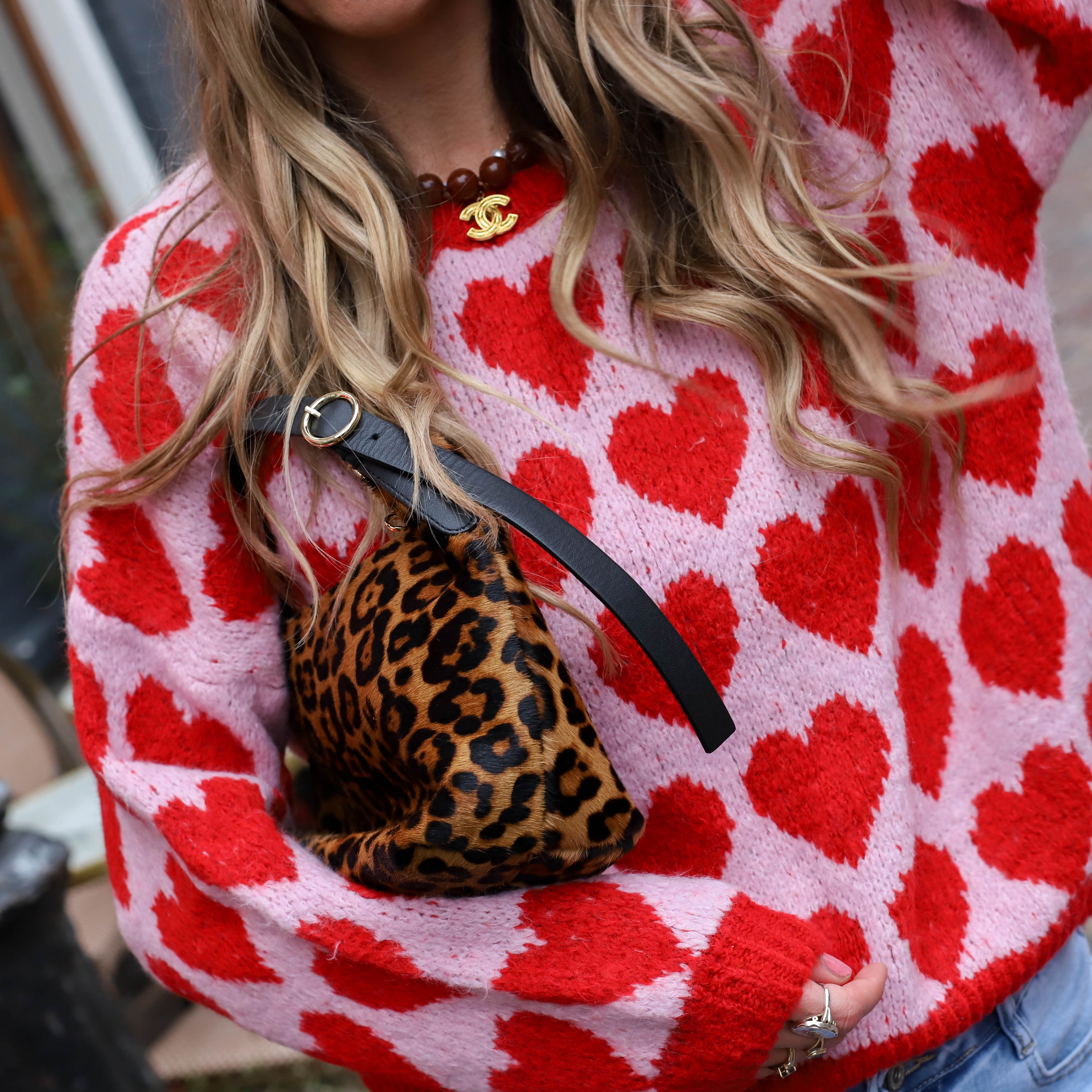 Trui oversized hearts roze rood