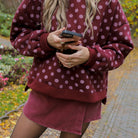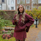 Deze Ruby Sweater is een heerlijke, zachte trui met een speelse, retro uitstraling. De sweater is uitgevoerd in een neutrale burgundy kleur en bedekt met een all-over wit stippenpatroon. De oversized pasvorm, de ronde hals en de comfortabele, zachte stof maken dit de perfecte trui voor casual dagen. De subtiel gebogen, onafgewerkte zoom en de raglanmouwen geven het item een nonchalante vibe.
