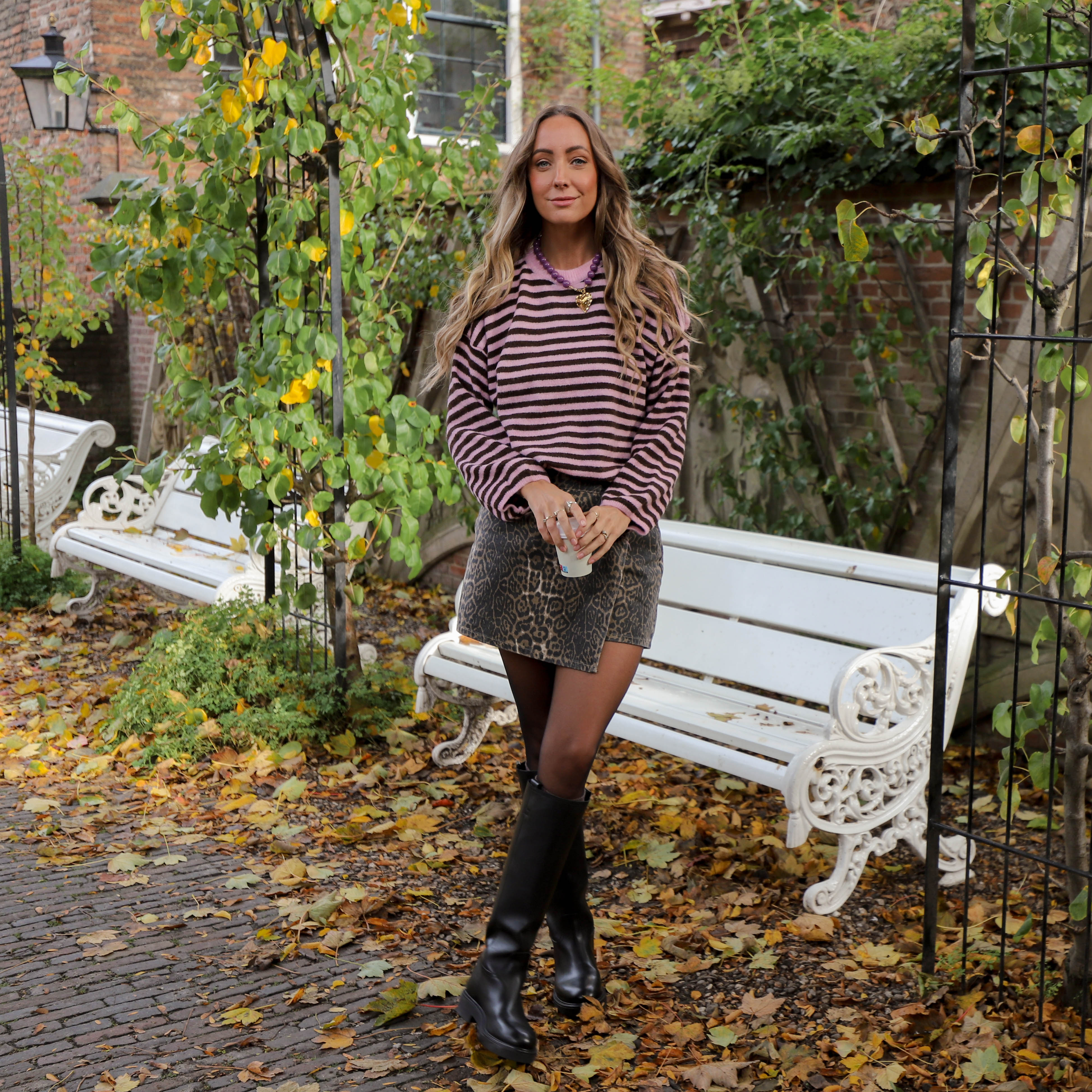 Streep knit lana roze bruin