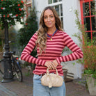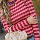 Deze aansluitende gestreepte top is een ideale en veelzijdige basislaag. De top heeft een patroon van horizontale strepen in twee tinten rood/burgundy en is uitgevoerd in een ribgebreide stof. Dankzij het materiaal biedt deze top veel stretch, waardoor hij mooi aansluit op het lichaam en de gehele dag comfortabel draagt.