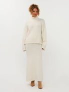 Skirt Eveline is een lange gebreide rok die zorgt voor een cozy en elegante look. De rok heeft een comfortabele pasvorm en voelt heerlijk zacht aan. De lengte van de rok is 94 cm bij een maat S.