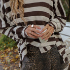 Deze Zara Streep Sweater is een comfy en kleurrijke toevoeging aan je casual collectie. De sweater heeft een zachte, gebreide textuur en een opvallend horizontaal streepdessin in een unieke combinatie van ecru en bruin. De ruime, oversized pasvorm, ronde hals en de wijde mouwen zorgen voor een relaxte en nonchalante uitstraling.