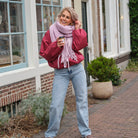Deze heerlijk zachte sjaal in een subtiele lila kleur is het perfecte accessoire om je warm te houden en je outfit een zachte, vrouwelijke touch te geven. De sjaal heeft een fijne, gebreide textuur en is afgewerkt met speelse franjes aan de uiteinden. Dankzij de royale afmetingen kun je de sjaal op verschillende manieren dragen: losjes over de schouders, of comfortabel om de nek gewikkeld.