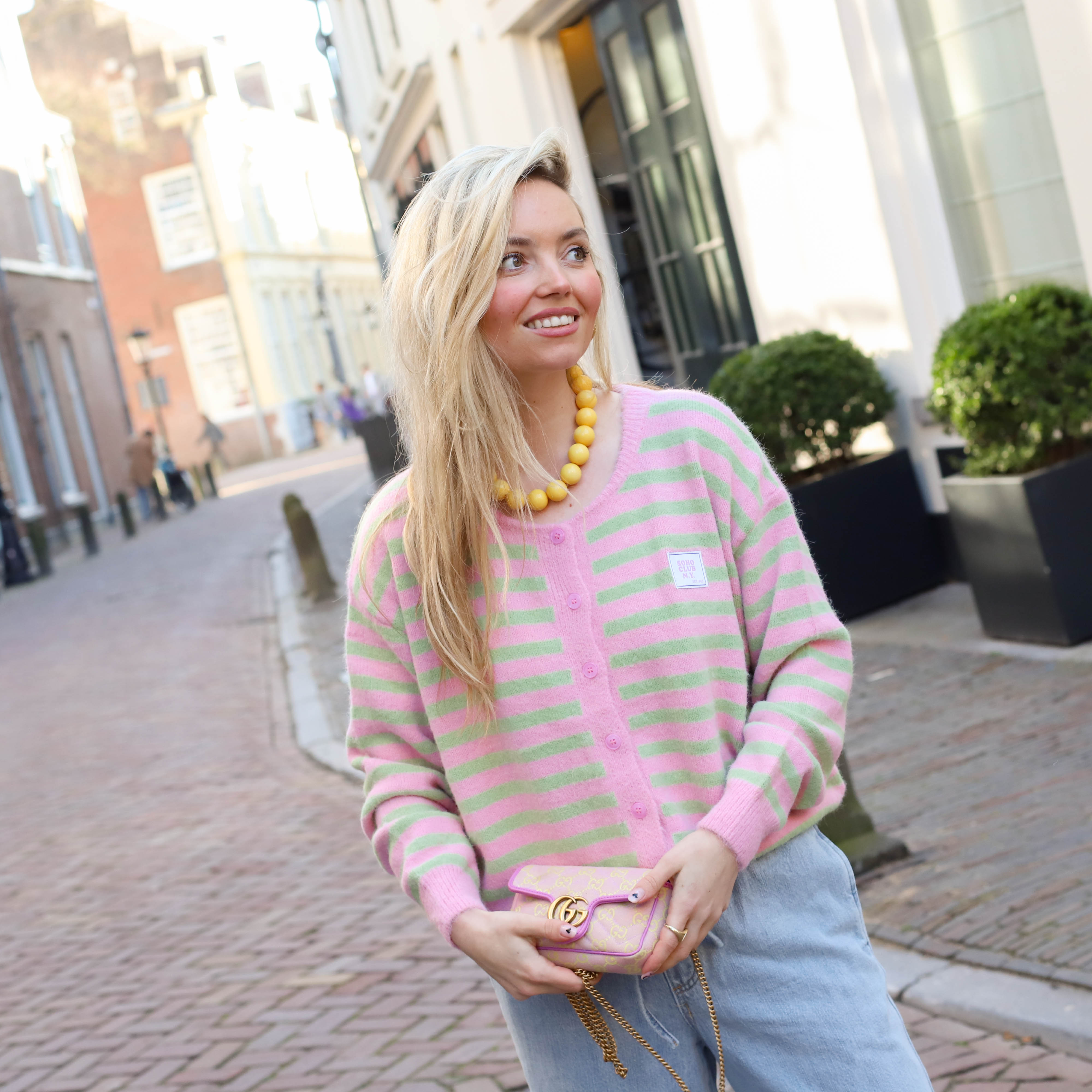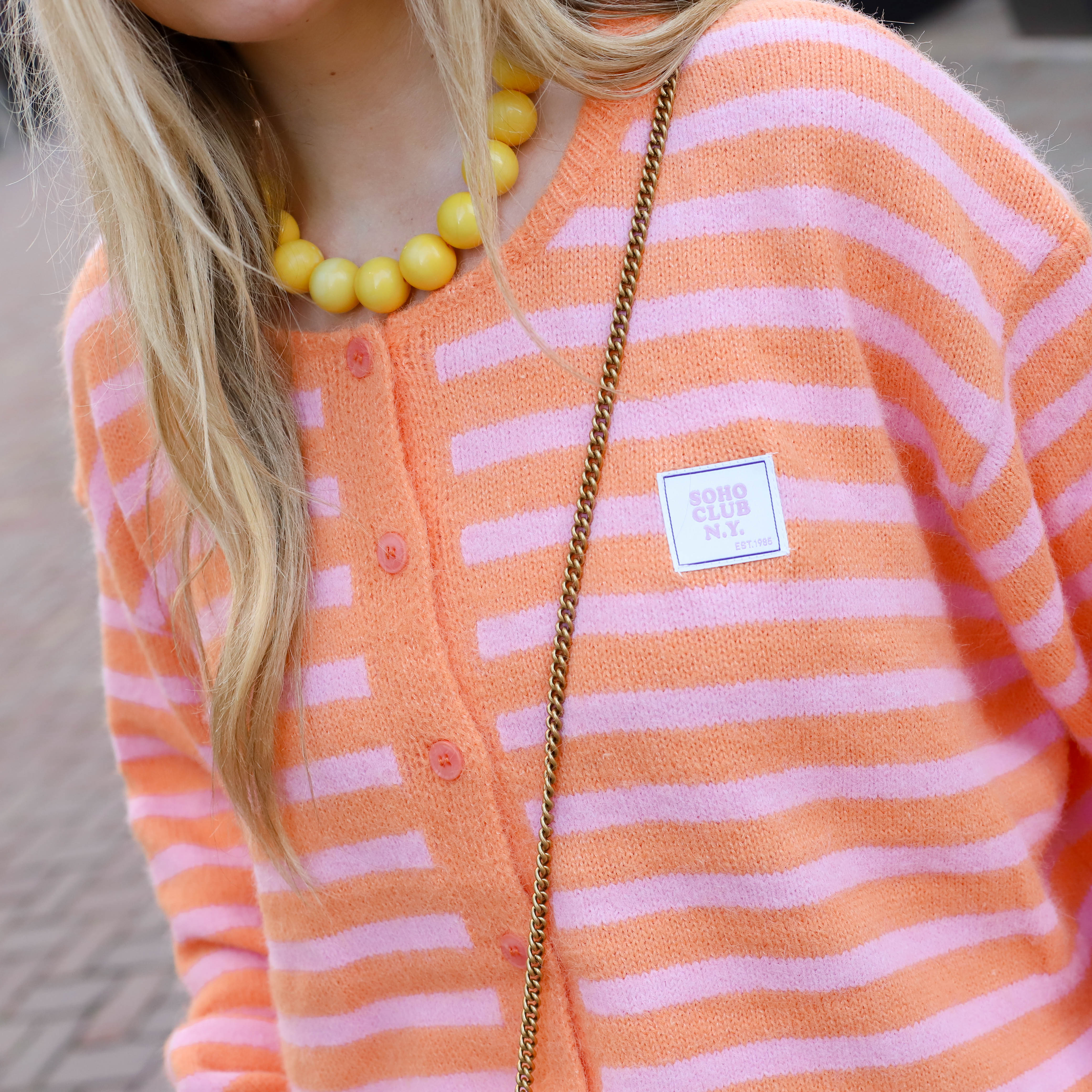 Vest Lexi Lou streep geel roze