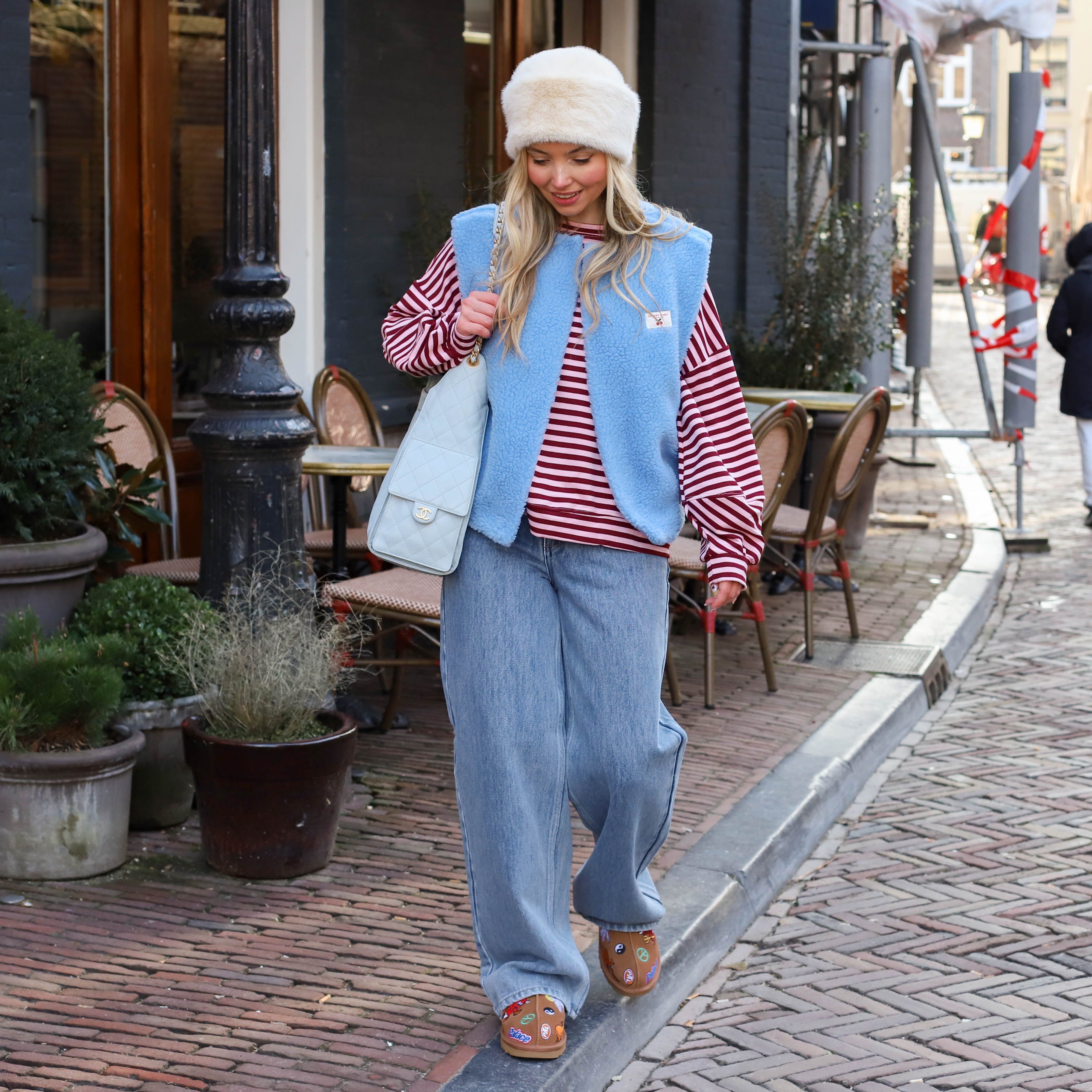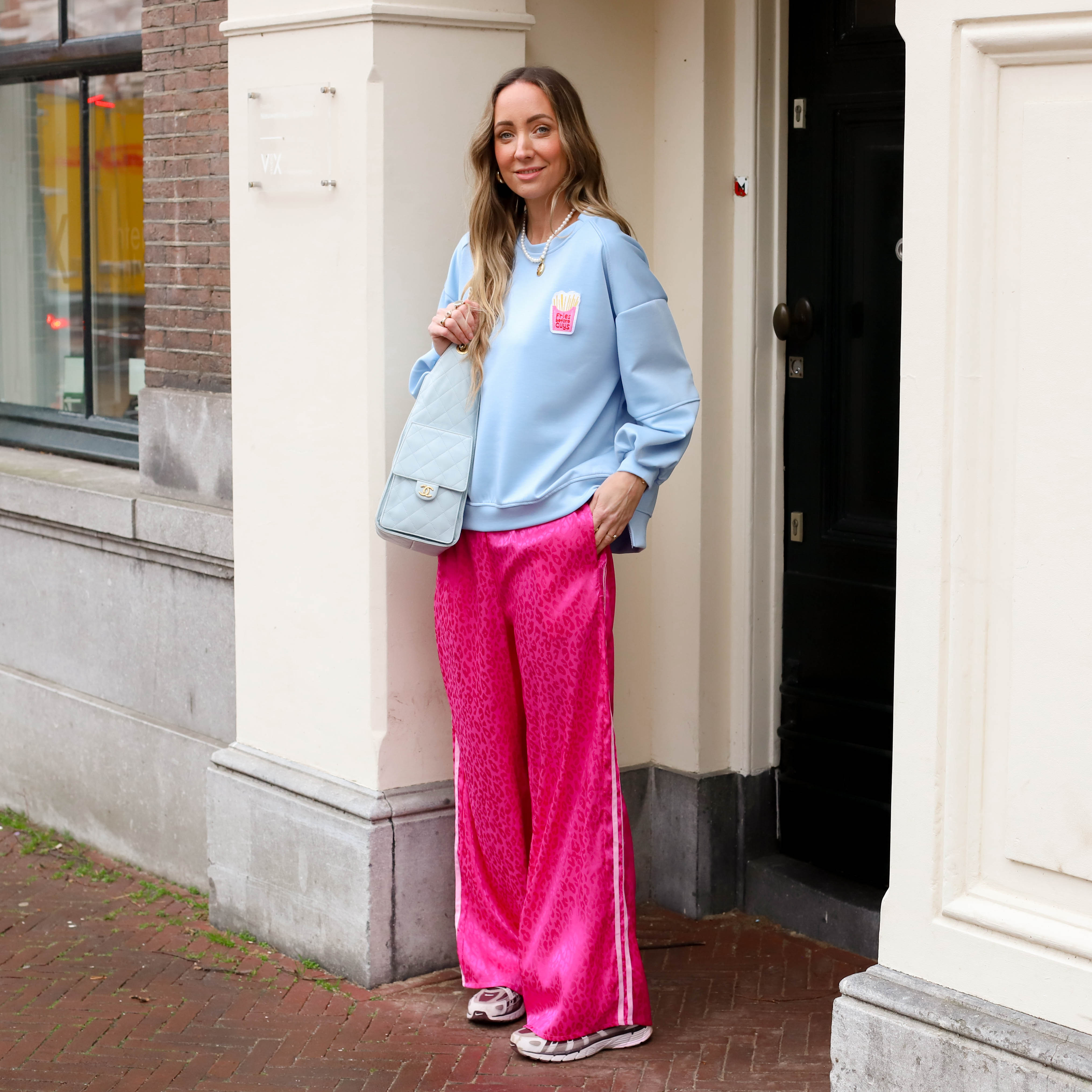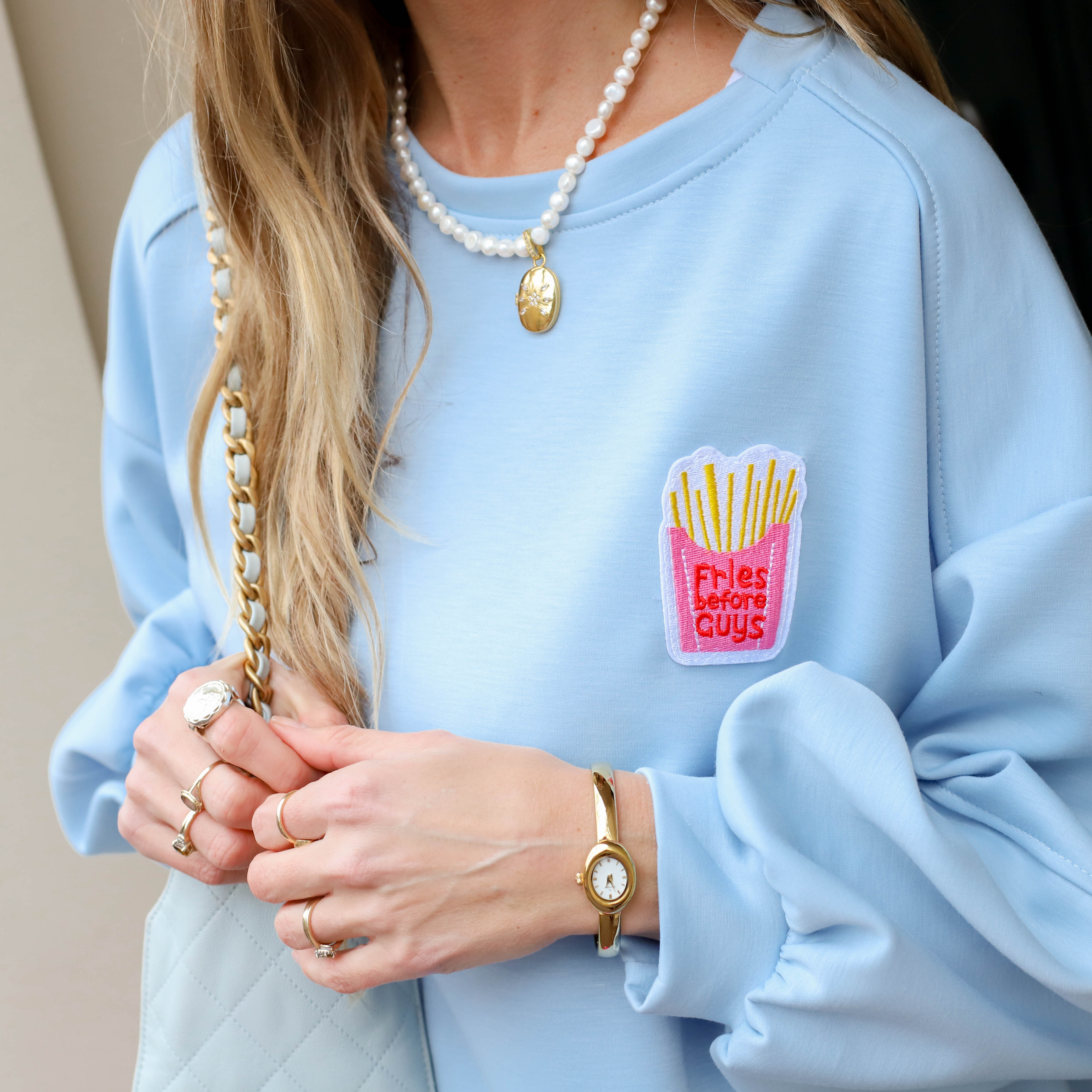 French fries sweater lichtblauw