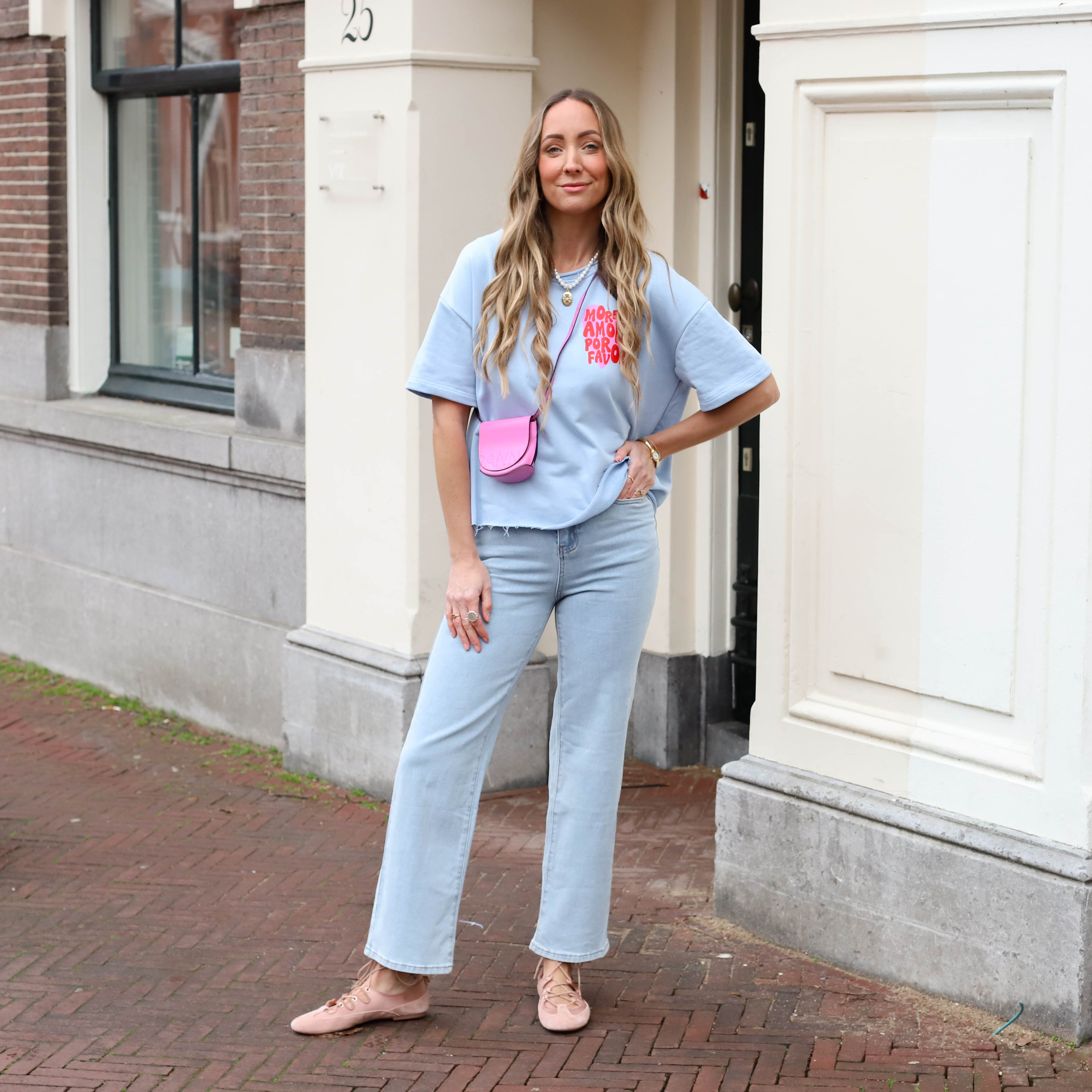 Amour sweater korte mouw roze