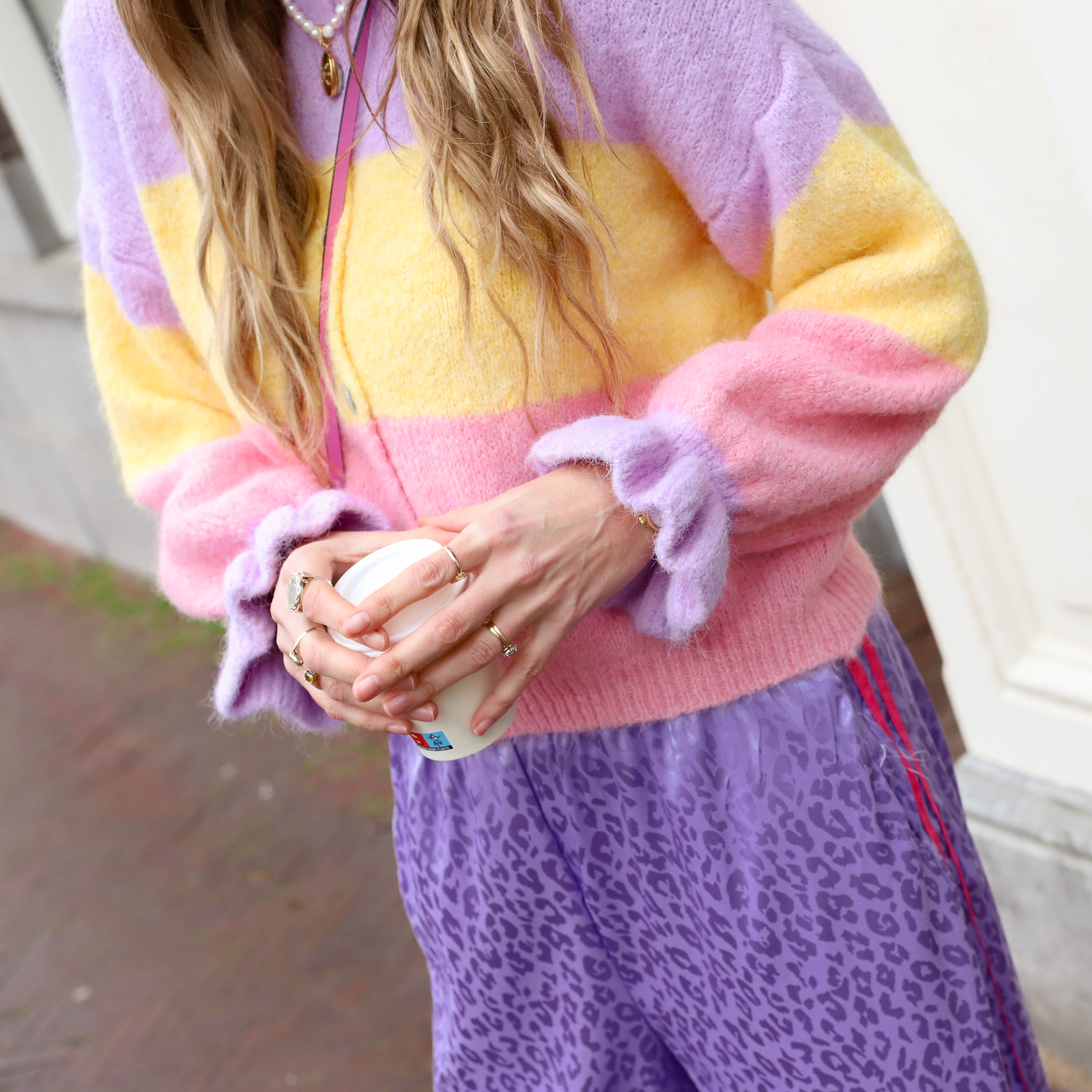 Vest ruffle lila roze geel