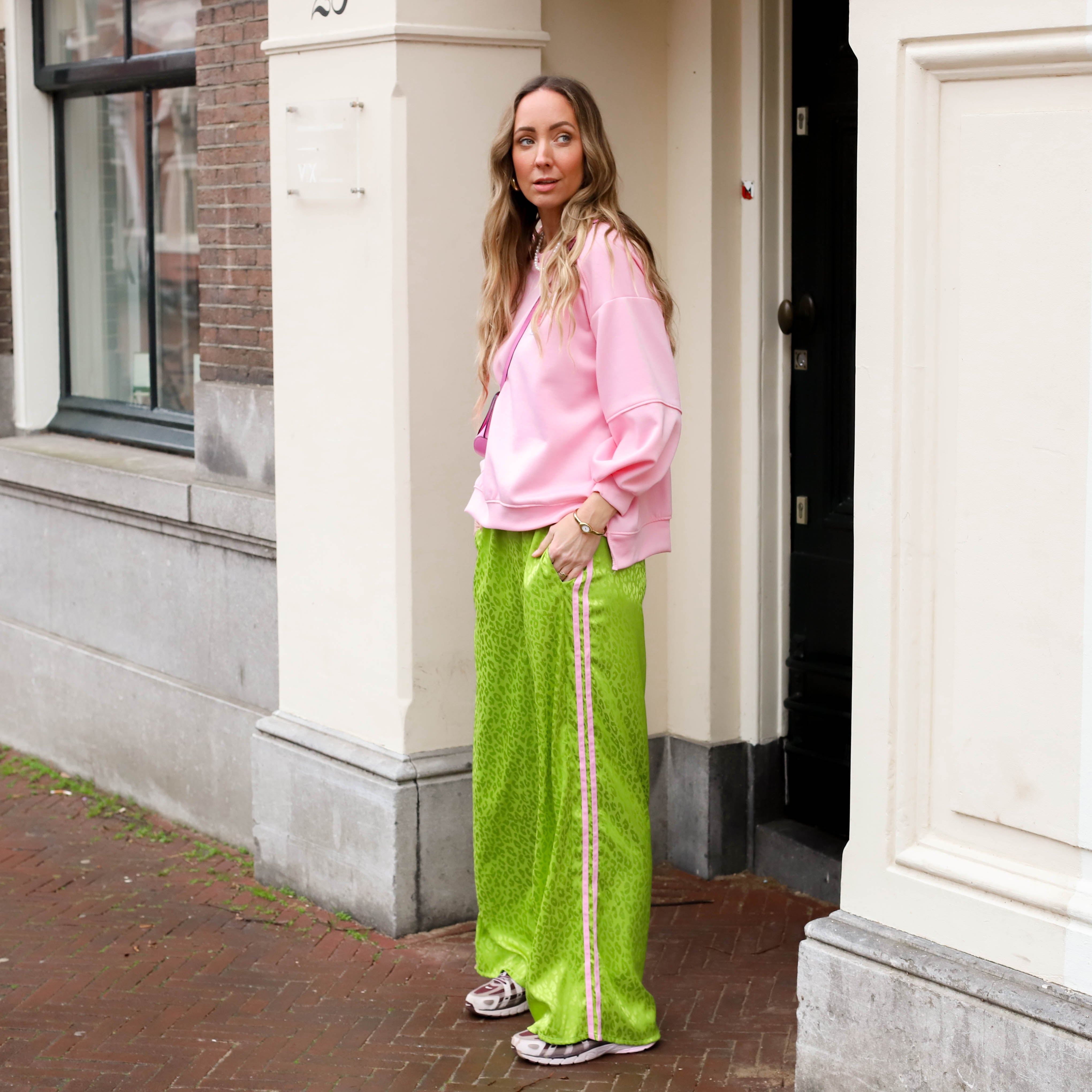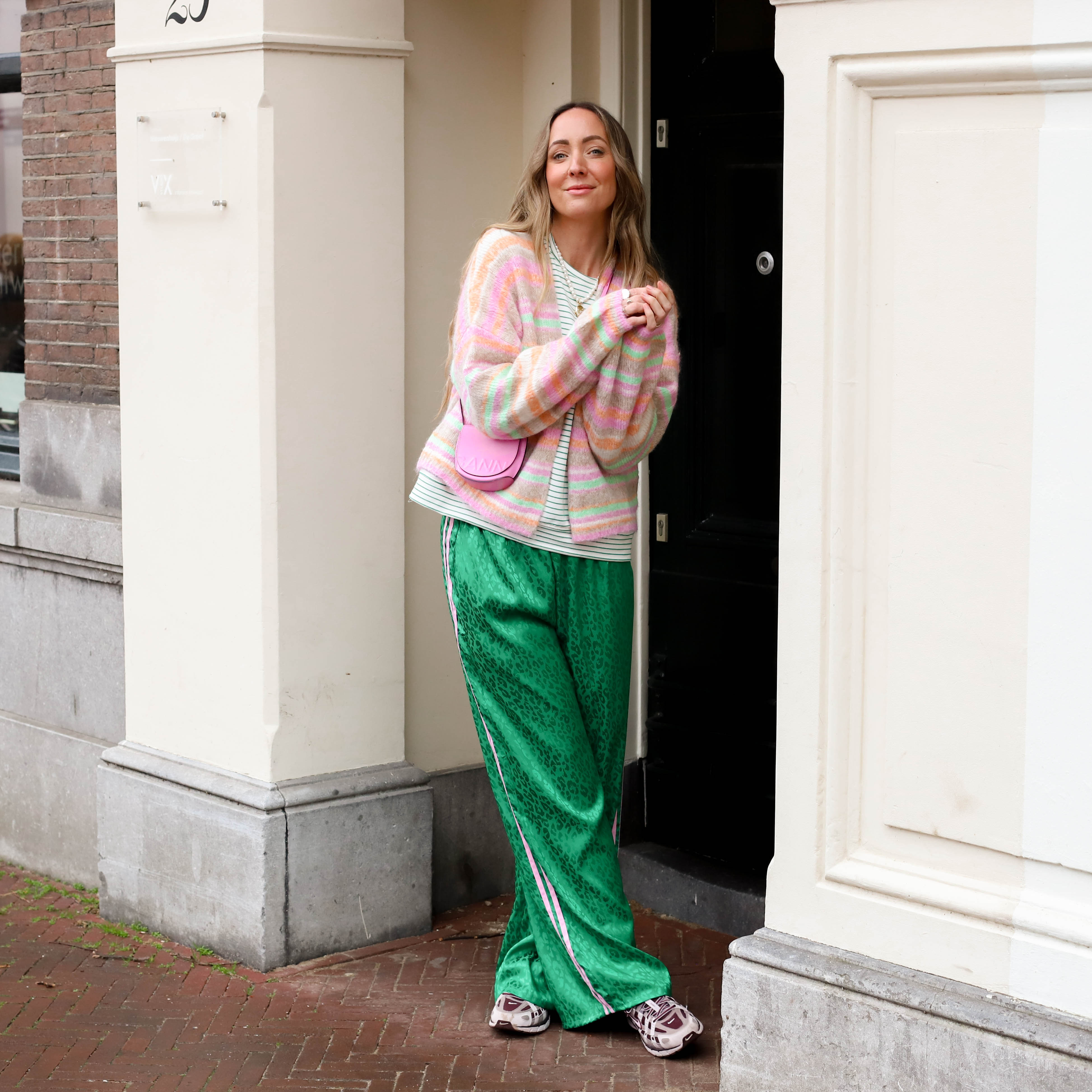 Aimee streep vest roze groen