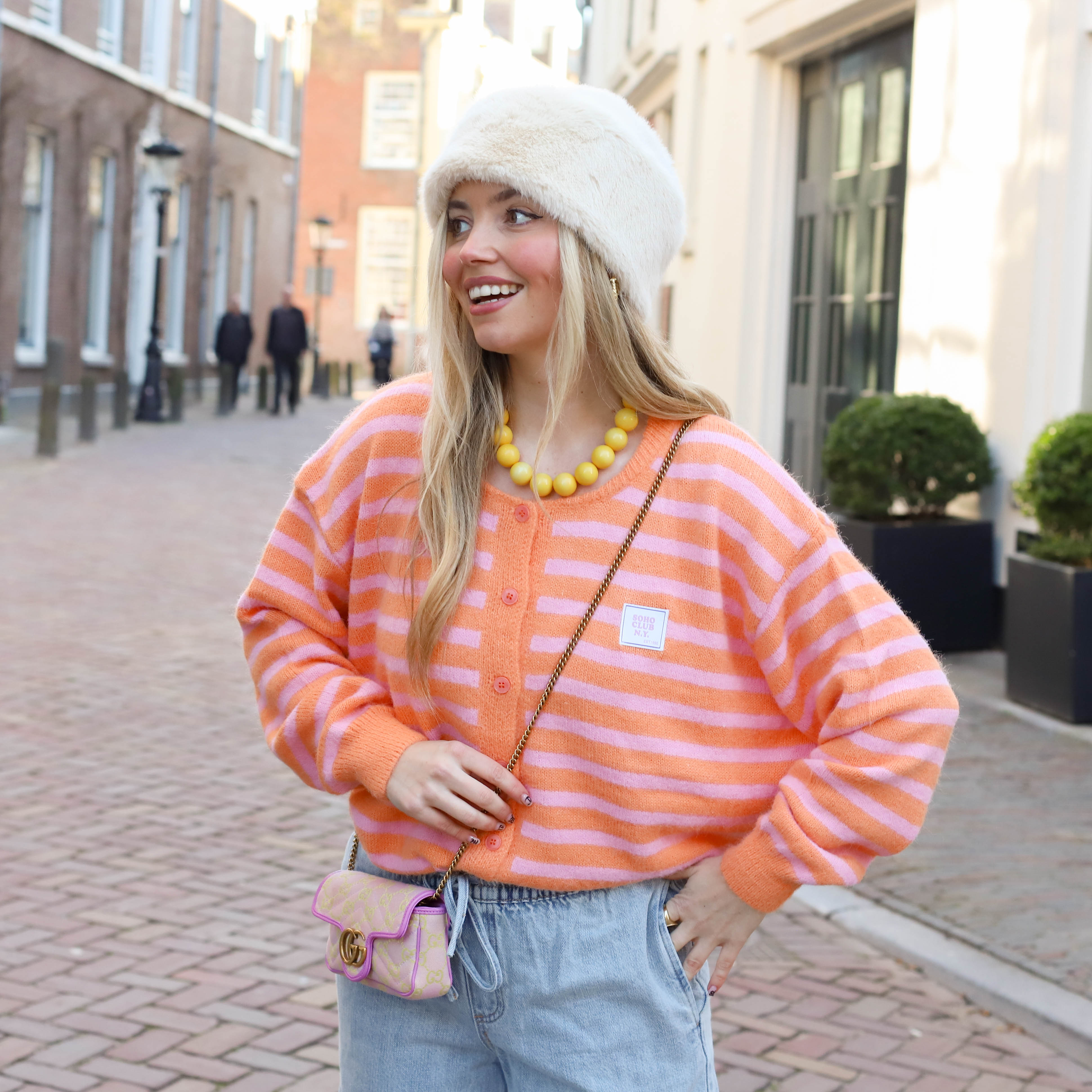 Deze Aimee Streep Vest roze oranje is een speels en zacht vest met een frisse, trendy uitstraling. Het vrolijke streeppatroon geeft dit vest een unieke look, terwijl de zachte, fluffy knit zorgt voor extra comfort. De knoopsluiting en relaxte fit maken het vest perfect om zowel open als gesloten te dragen, ideaal voor een kleurrijke touch in je dagelijkse outfit.
