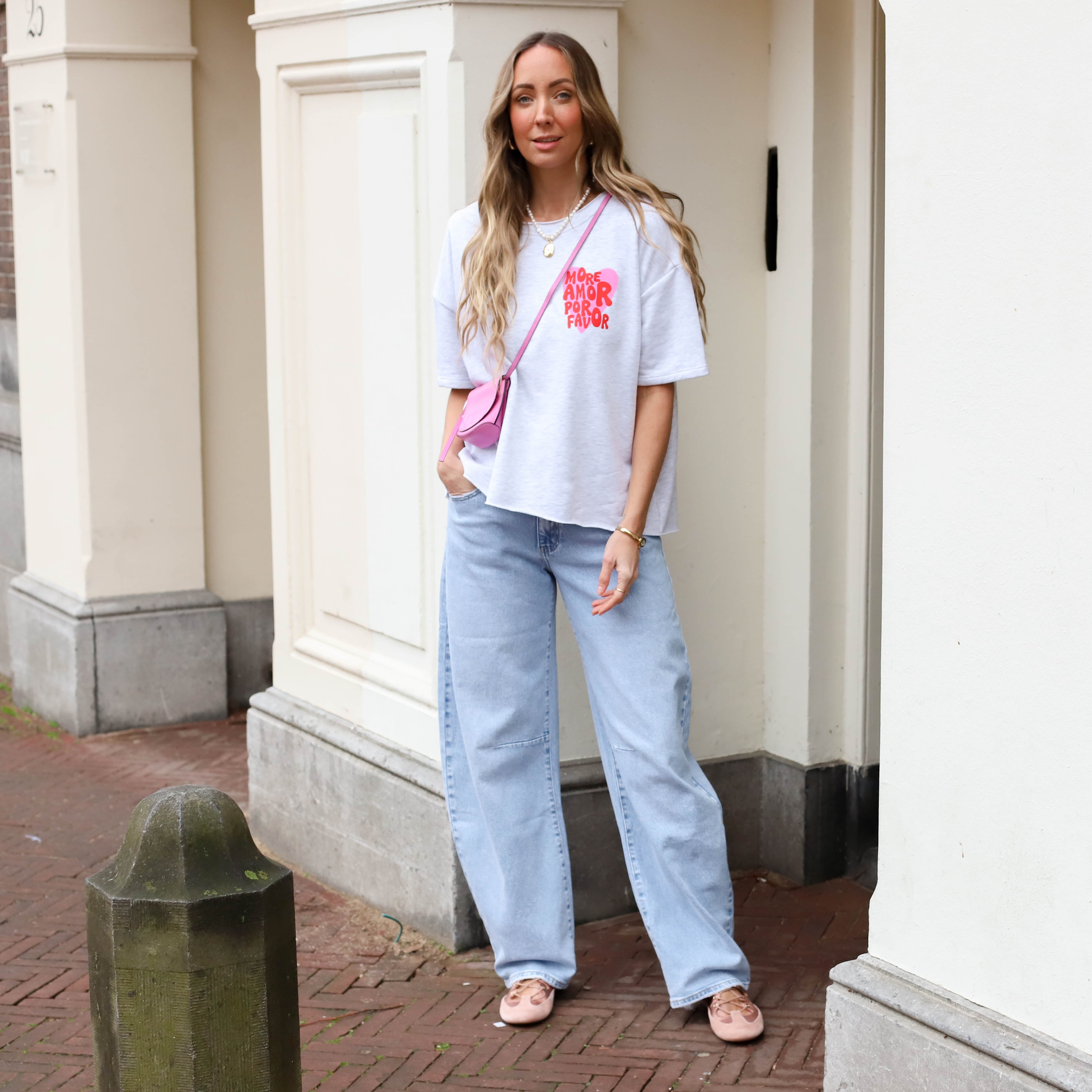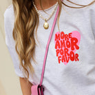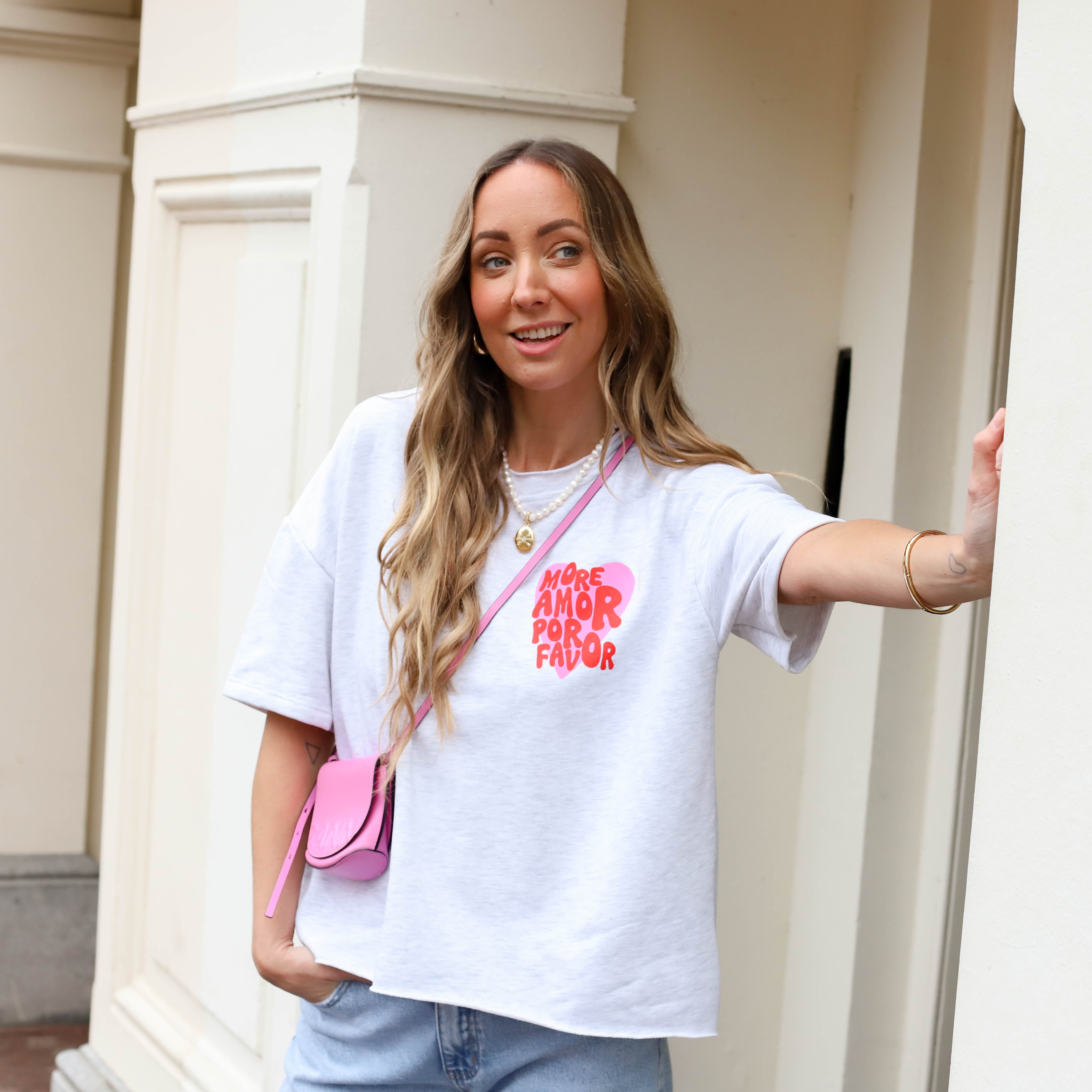 De zachte grijze kleur in combinatie met de speelse “More amor por favor” opdruk geeft deze leuke top een vrolijke en zomerse uitstraling. De relaxte fit en de comfortabele stof zorgen ervoor dat het item heerlijk zit, terwijl de rafelrand aan de onderzijde een stoere en nonchalante touch geeft. Perfect om casual te dragen op een jeans of short voor een frisse, trendy look. Een fijne musthave met een positieve boodschap.