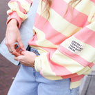 Deze Streep Sweater Life is een absolute favoriet voor een ontspannen en trendy look. De trui kenmerkt zich door een breed streeppatroon en een unieke patch op de mouw met de tekst "Life isn't perfect but your outfit can be". Dankzij de extreem baggy fit met verlaagde schouders en brede mouwen creëer je in een handomdraai een modern en nonchalant silhouette.