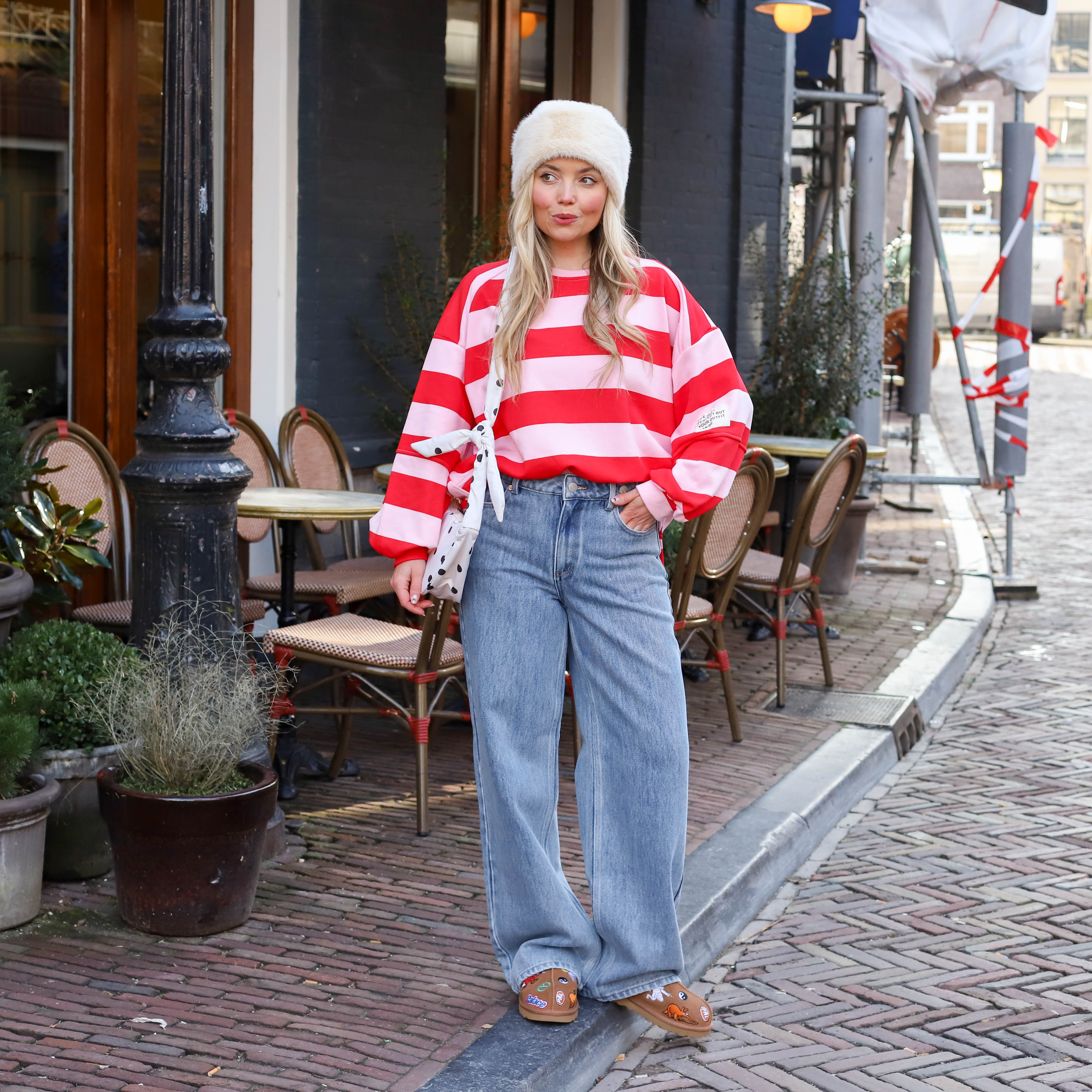 Deze Streep Sweater Life is een absolute favoriet voor een ontspannen en trendy look. De trui kenmerkt zich door een breed streeppatroon en een unieke patch op de mouw met de tekst "Life isn't perfect but your outfit can be". Dankzij de extreem baggy fit met verlaagde schouders en brede mouwen creëer je in een handomdraai een modern en nonchalant silhouette.