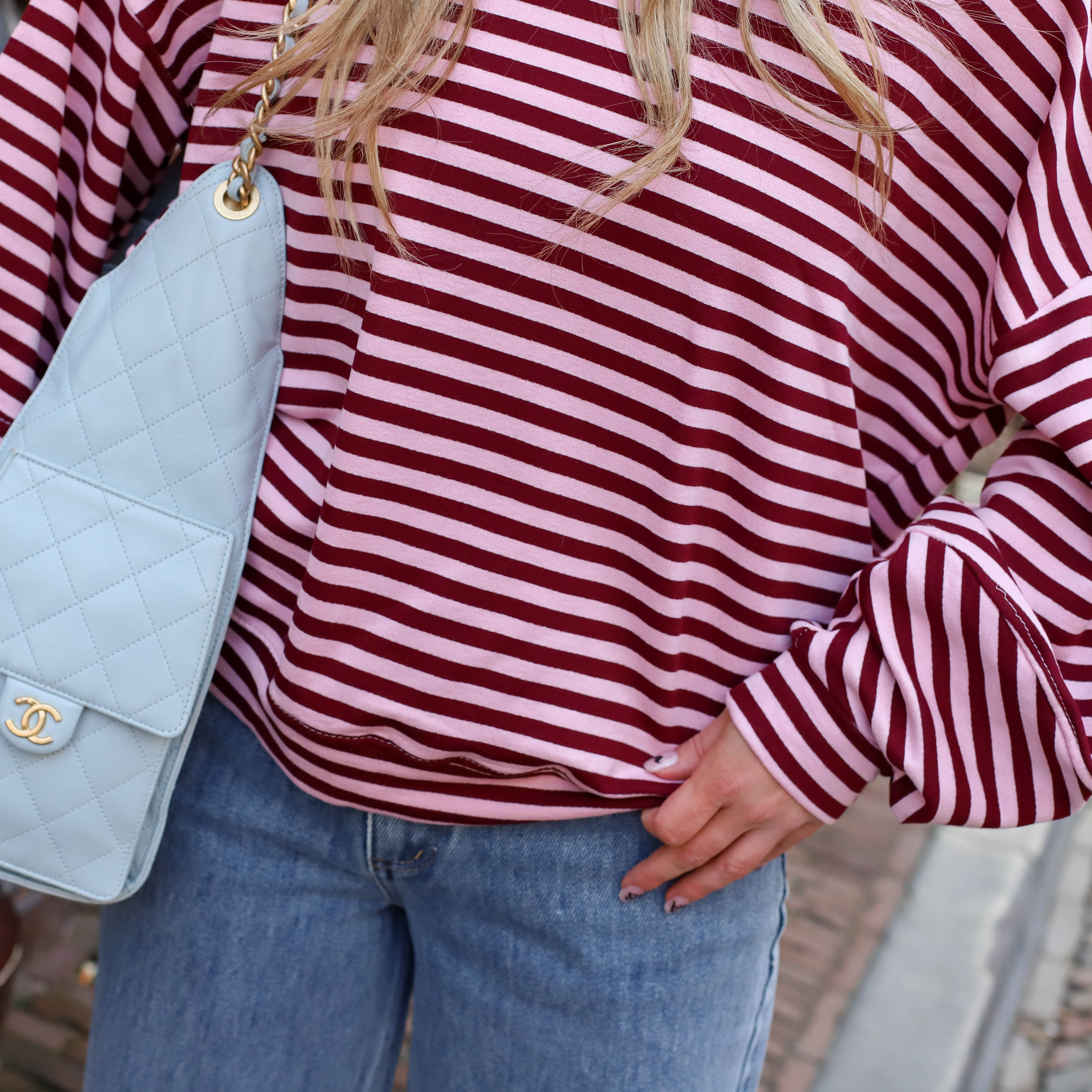 Kenmerken: Ronde hals, horizontale strepen, baggy mouwen