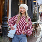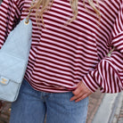 Deze Striped Longsleeve in roze en burgundy is een onmisbare basic met een twist. Het shirt heeft een relaxte, oversized pasvorm met verlaagde schoudernaden voor een nonchalante look. De fijne streepjes en de zachte stof maken het een comfortabel item dat je het hele jaar door kunt dragen.