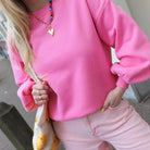 Sweater Floral is een comfortabele trui met een hoge ronde hals, verlaagde schoudernaden en grote ballonmouwen. De loose fit en zachte sweatstof maken deze trui heerlijk om te dragen, je wilt hem niet meer uitdoen! Perfect voor een casual en trendy look die comfortabel voelt. De lengtemaat van sweater Floral is 61cm bij een maat S. De mouwlengte is 50cm.