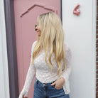 Mooie lace top in de kleur wit. De top schijnt door en is gemaakt van mesh. Combineer met een leuke blazer, shirt of jurk. Helemaal volgens de laatste trends.
