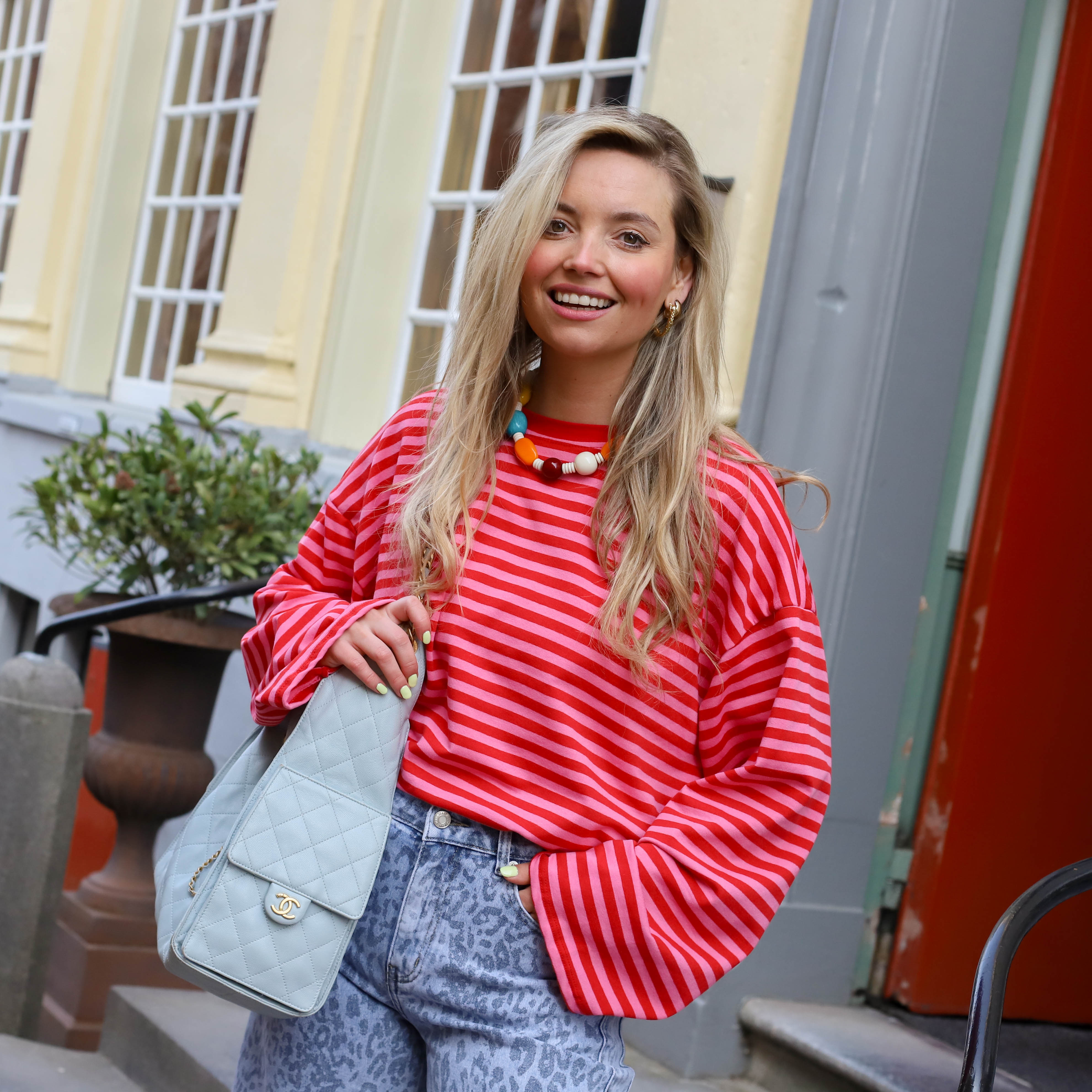 Het roze rode streeppatroon geeft de sweater een frisse look, terwijl de kleurrijke, fluffy letters op de voorkant zorgen voor een opvallend en uniek detail. Dankzij de relaxte fit is deze sweater heerlijk comfortabel en perfect voor een casual, feel-good outfit.