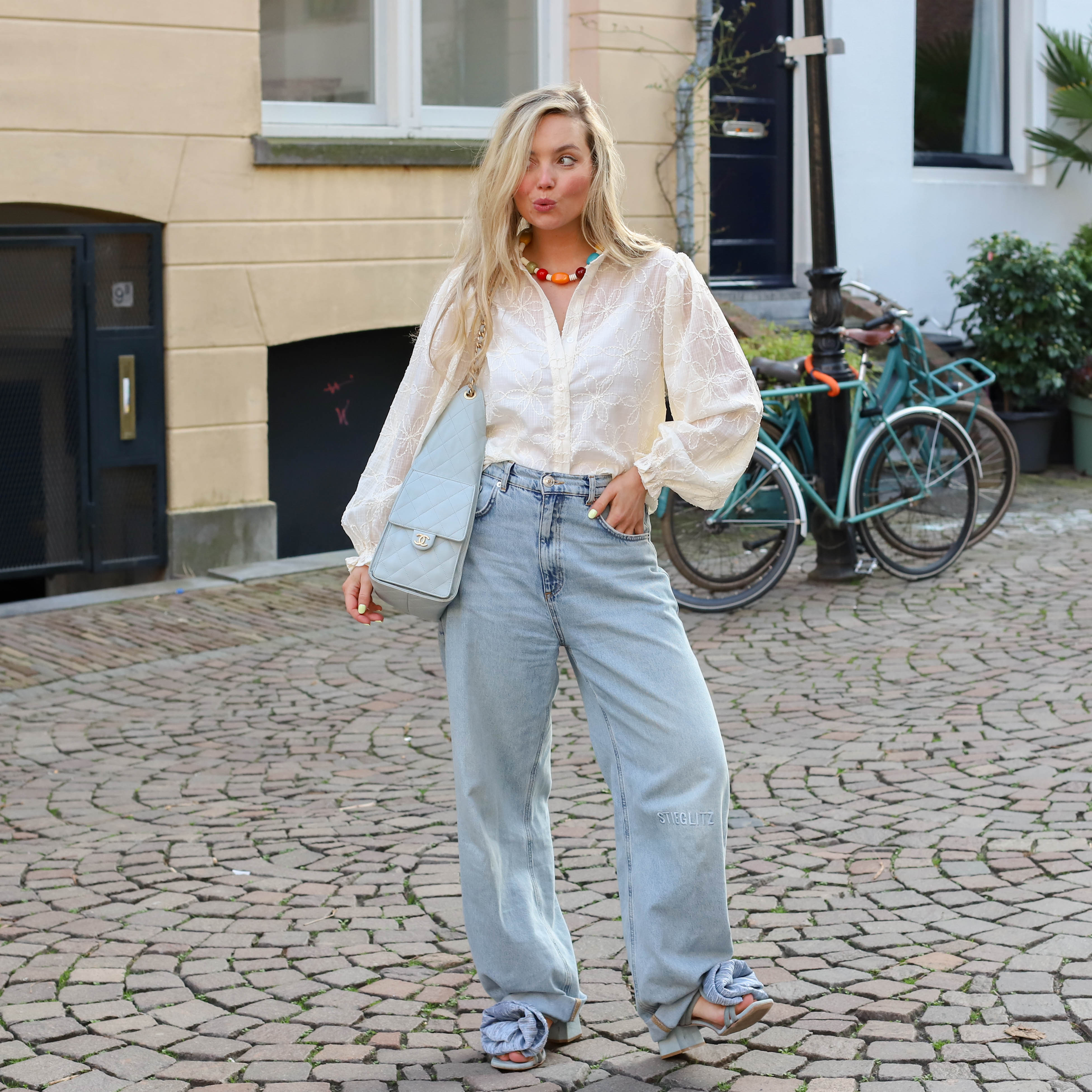 Blouse Isamae is een blouse met prachtige geborduurde bloemen in een semi transparante stof. De blouse heeft een licht getailleerde pasvorm, pofmouwen, een kraagje en sluit met een knoopsluiting aan de voorzijde. De totale lengte van Blouse Isamae is 61 cm met een mouwlengte van 61 cm bij een maat S.
