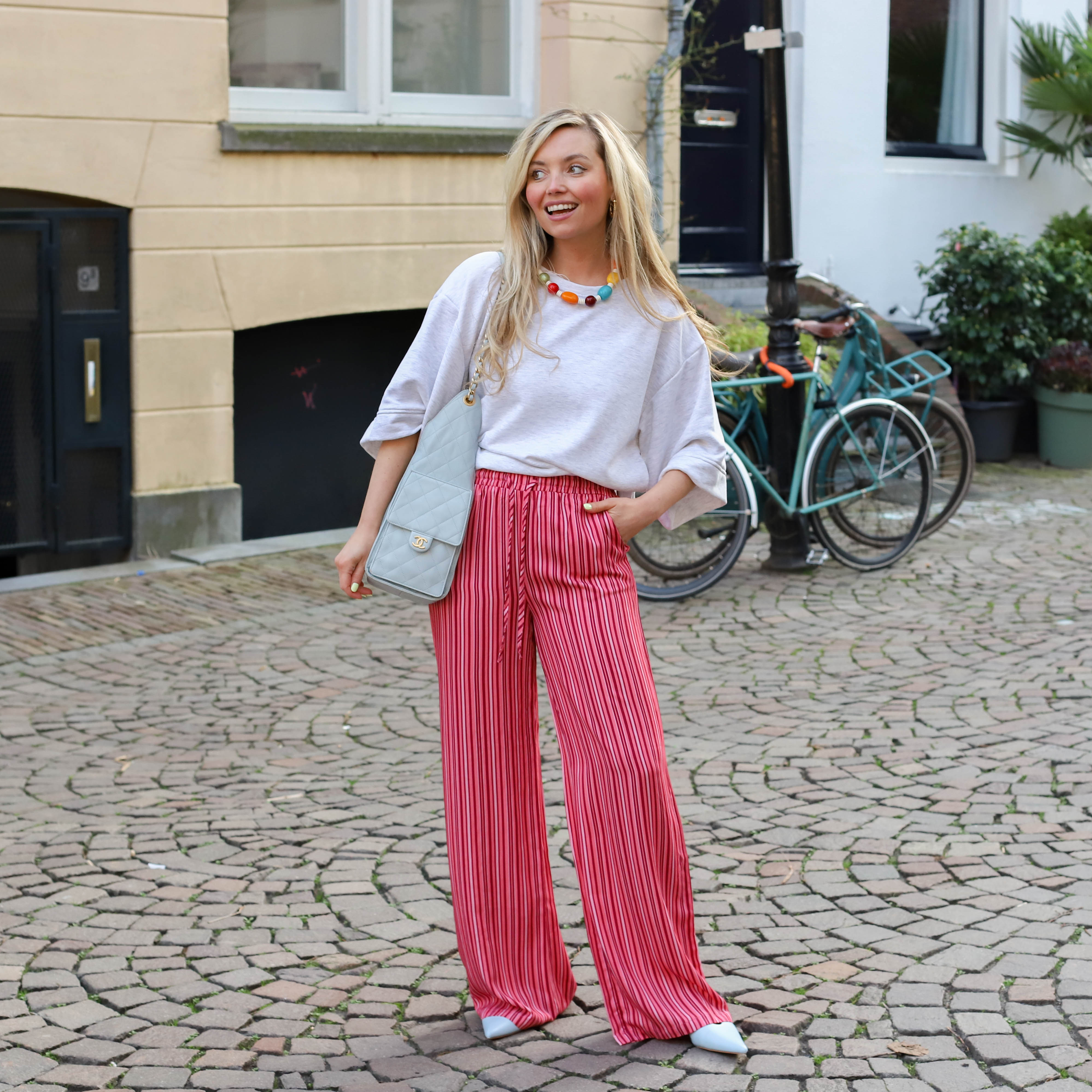 Pants Nicky is een wide leg broek met strepen, wat zorgt voor een speels maar ook verlengend effect. Het model heeft een elastische tailleband met strikkoord, waardoor de broek comfortabel draagt en mooi aansluit in de taille. Combineer Pants Nicky met blouse Pixie voor een matching set.