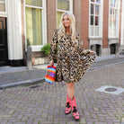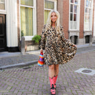 Beautiful black midi dress in a colorful floral print. The dress closes with buttons. Finish it off with a pair of nice boots or sneakers.