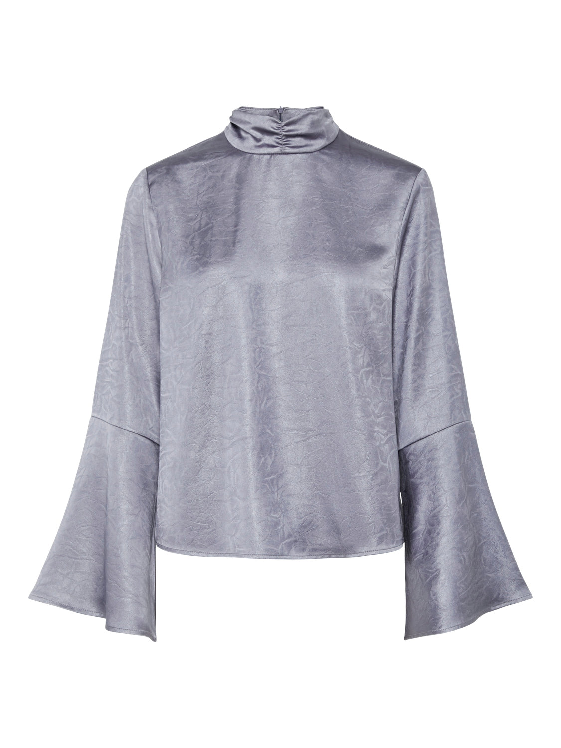 Mooi satijnachtig bloesje van YAS. Het blousje heeft een hoge hals en wijd uitlopende mouwen. Combineer deze feestelijke top met een glitterrok.