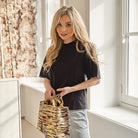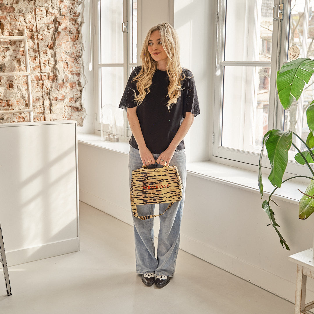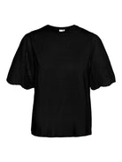 Deze comfortabele, zwarte top met broderie details op de mouwen is perfect voor elke dag. De top heeft een ronde hals en korte mouwen, waardoor hij ideaal is voor zowel casual als geklede gelegenheden. De broderie details geven de top een extra touch en maken hem net even anders dan een basic T-shirt.