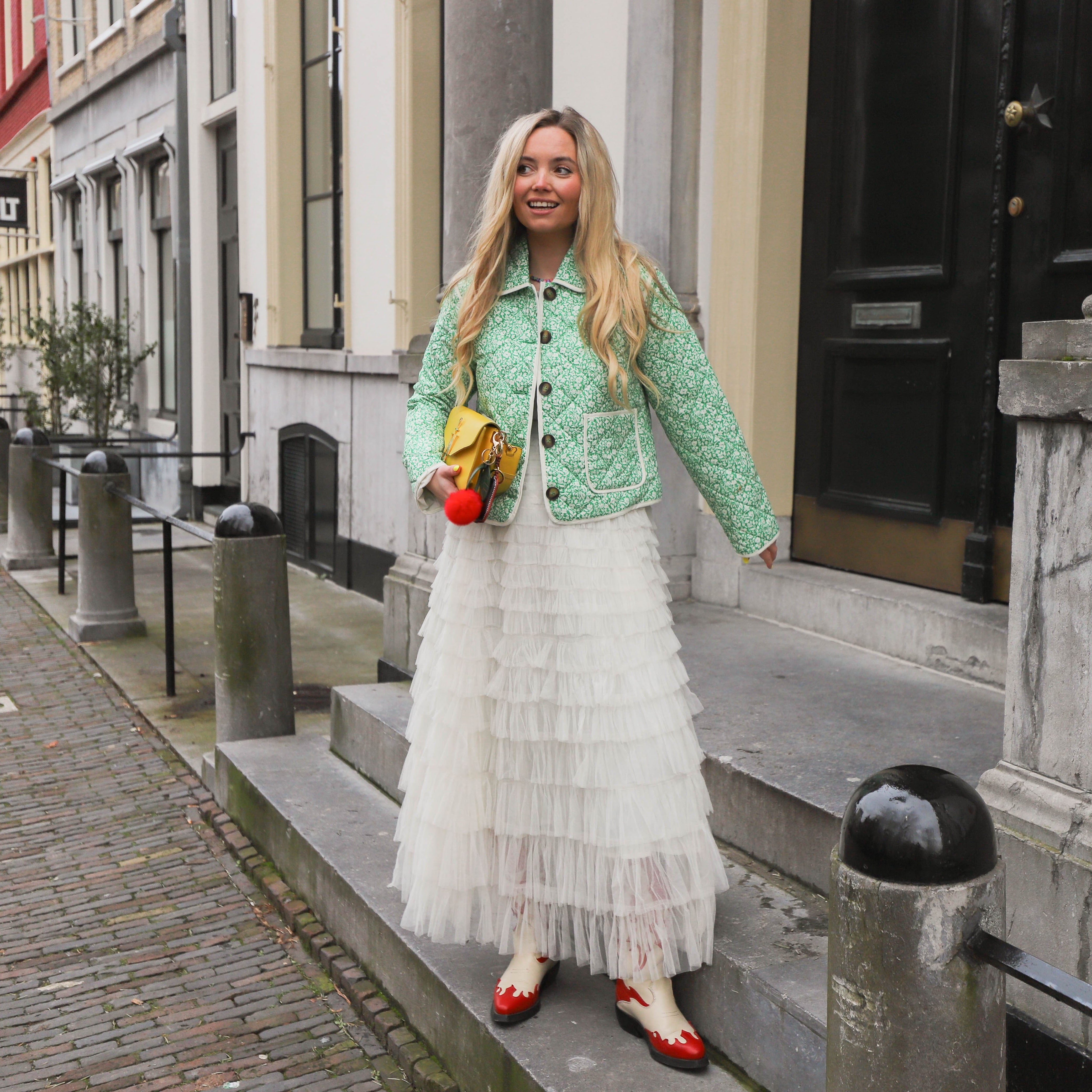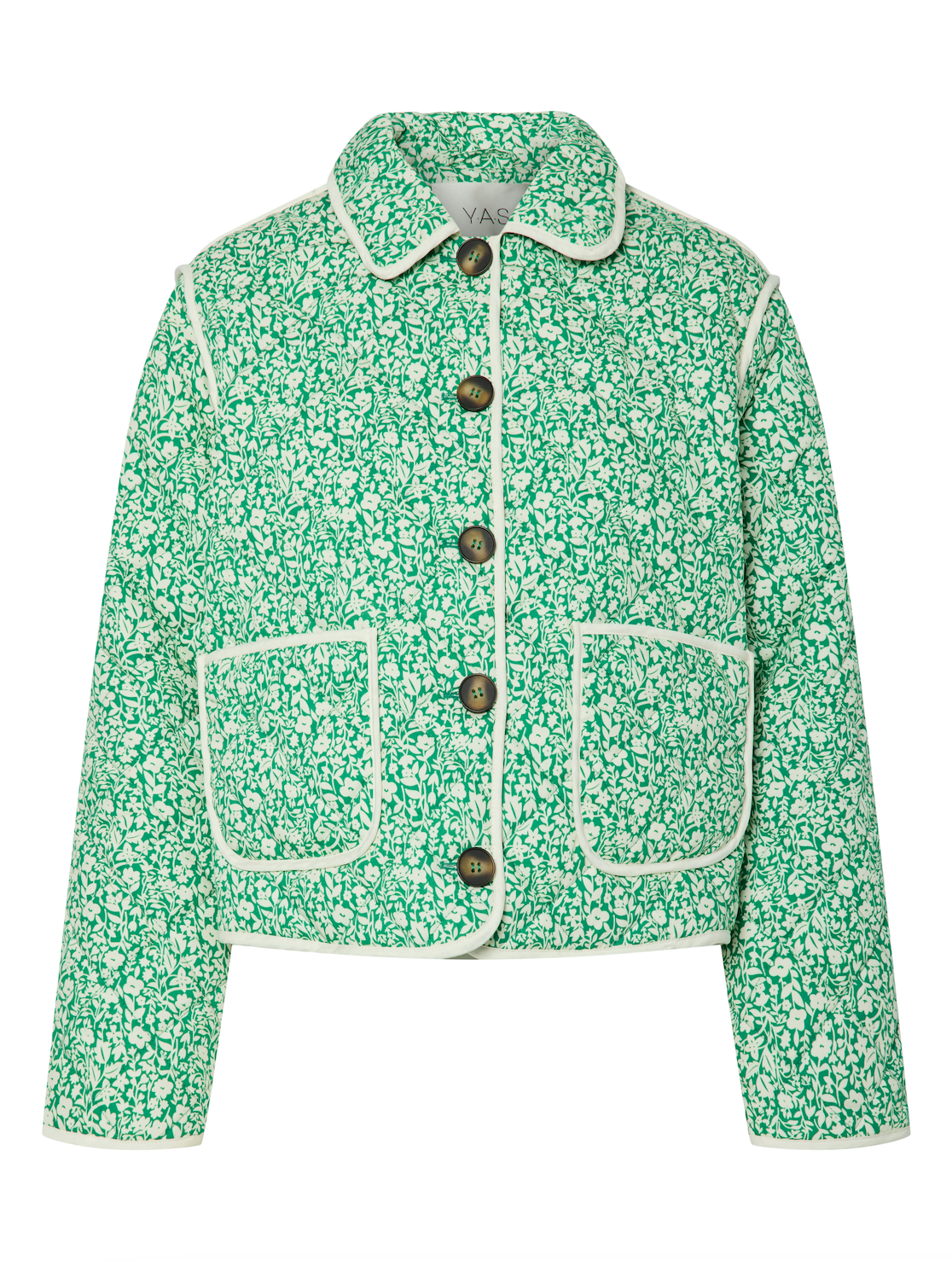 Mooi jasje met kleurrijke print in het groen van YAS. Het jasje heeft een open sluiting en staat leuk met een tulle rok.