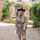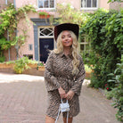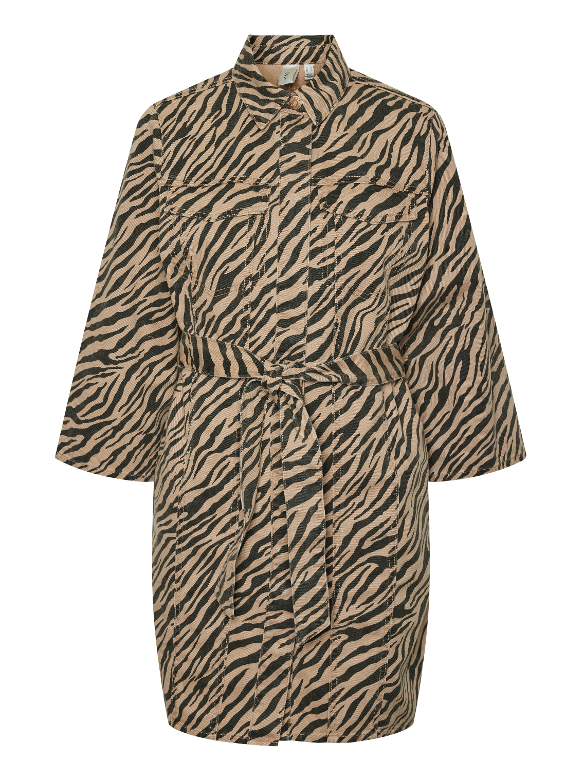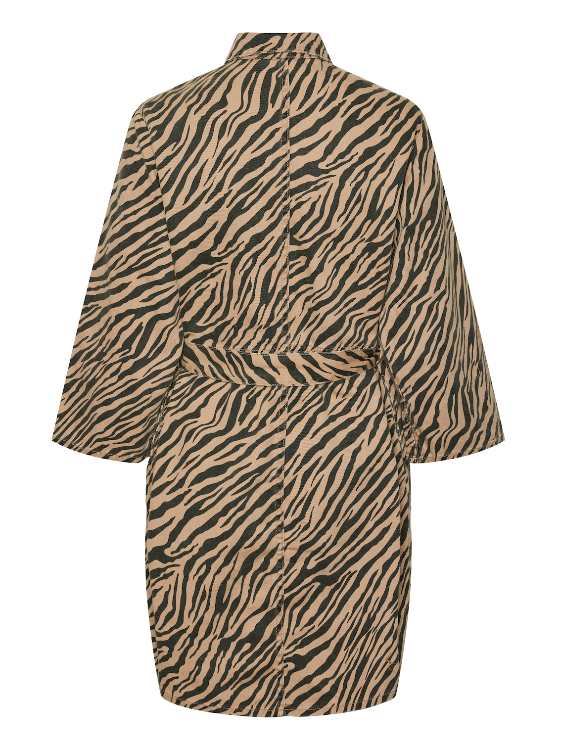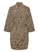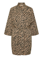 Mooie beige jurk met zwarte zebraprint. De jurk is gemaakt van denim stof, dus wat dikker. Combineer het jurkje met een leuke witte tas.