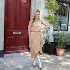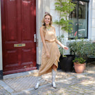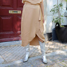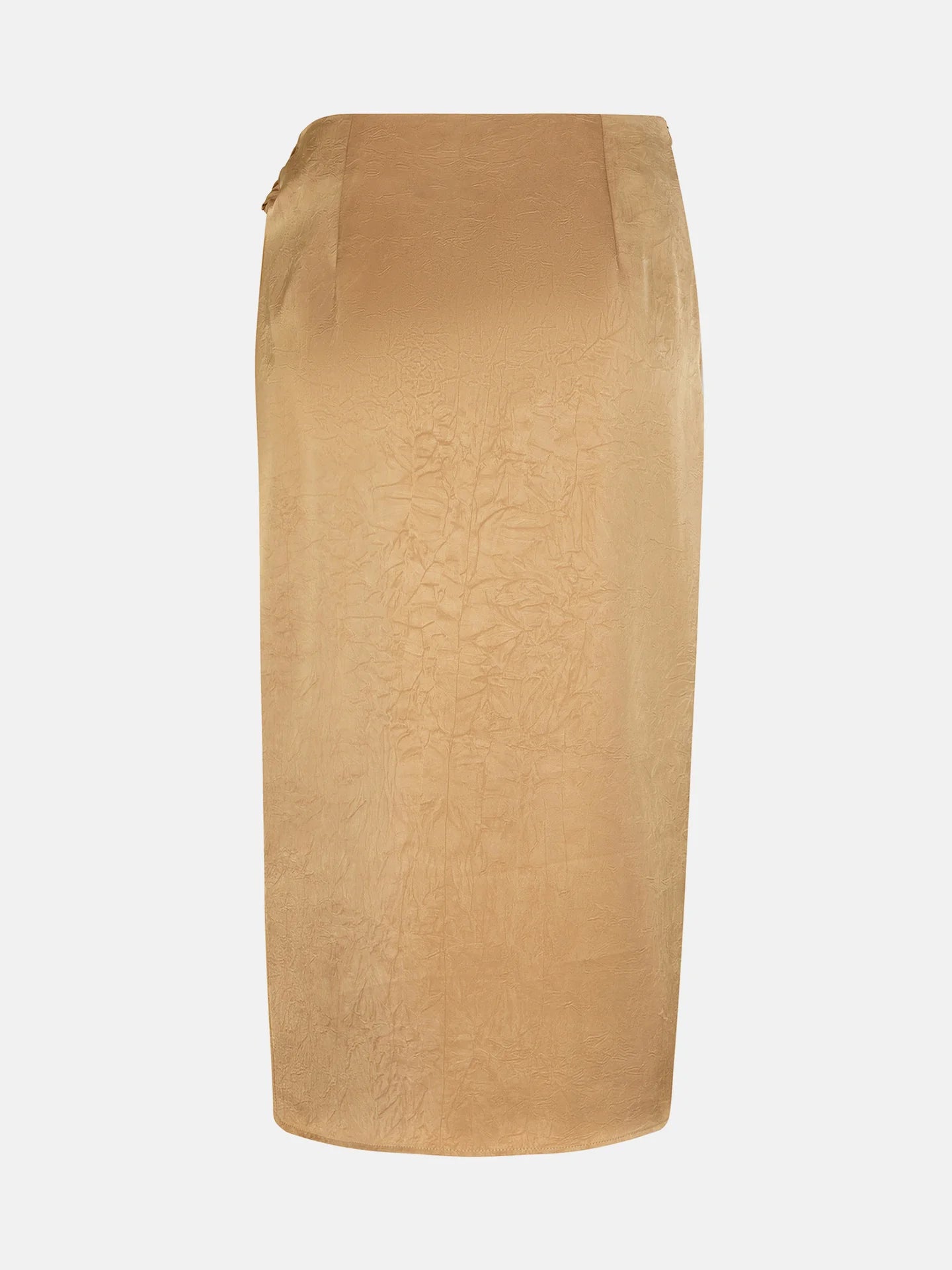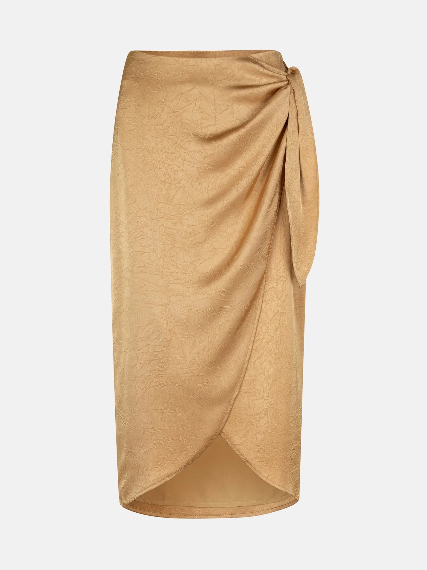 Skirt Barbara is een vrouwelijke en stijlvolle wrapskirt die elegantie uitstraalt. Deze rok heeft een flatterend overslagmodel met een sierlijke knoopdetail aan de zijkant. De subtiel glanzende stof met een lichte textuur geeft de rok een luxe uitstraling.