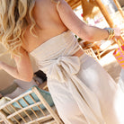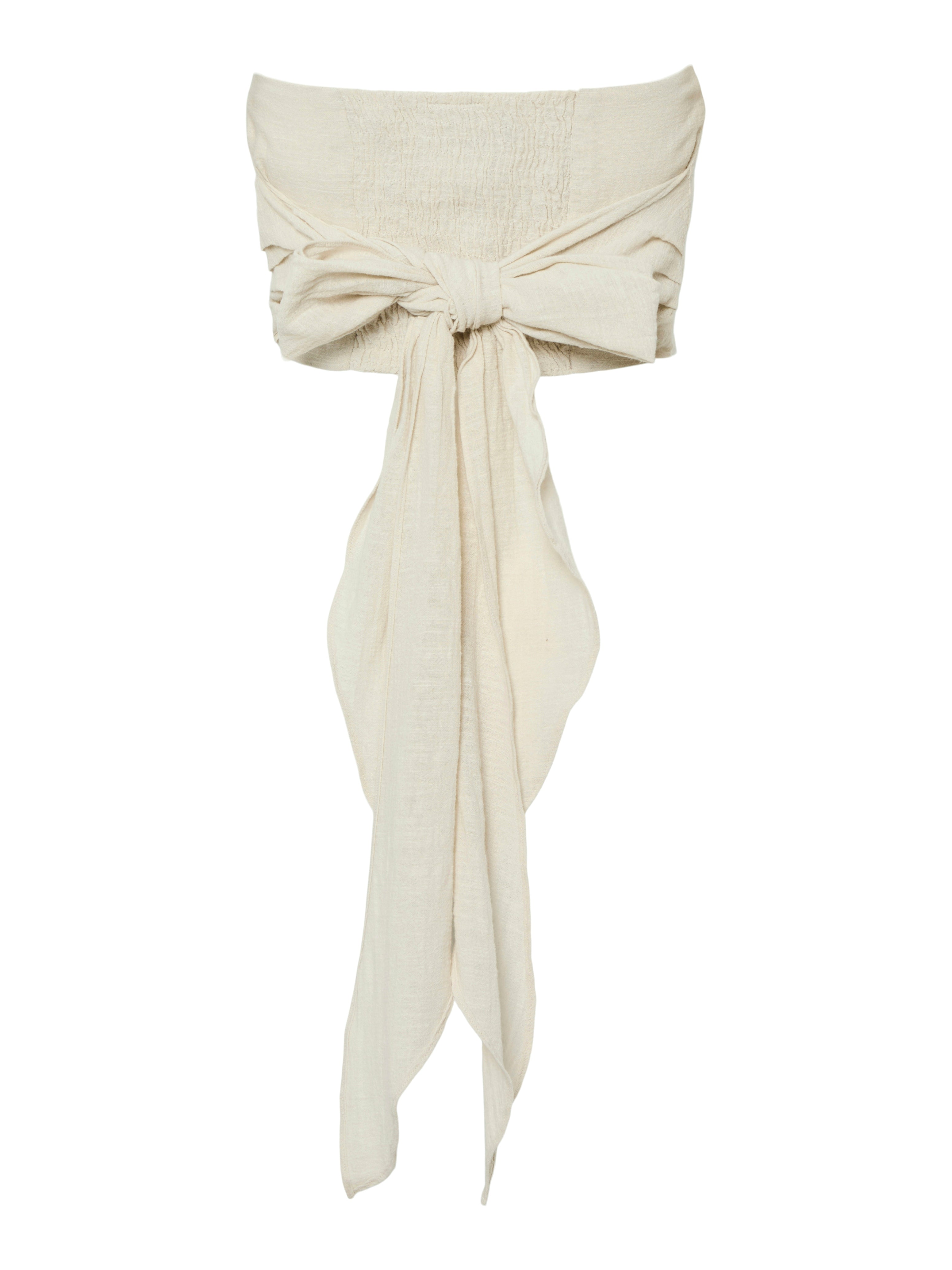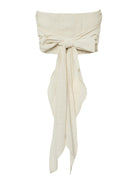 Mooie crop top die te strikken is van de achterkant. Combineer deze strapless top met het bijpassende broek.