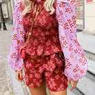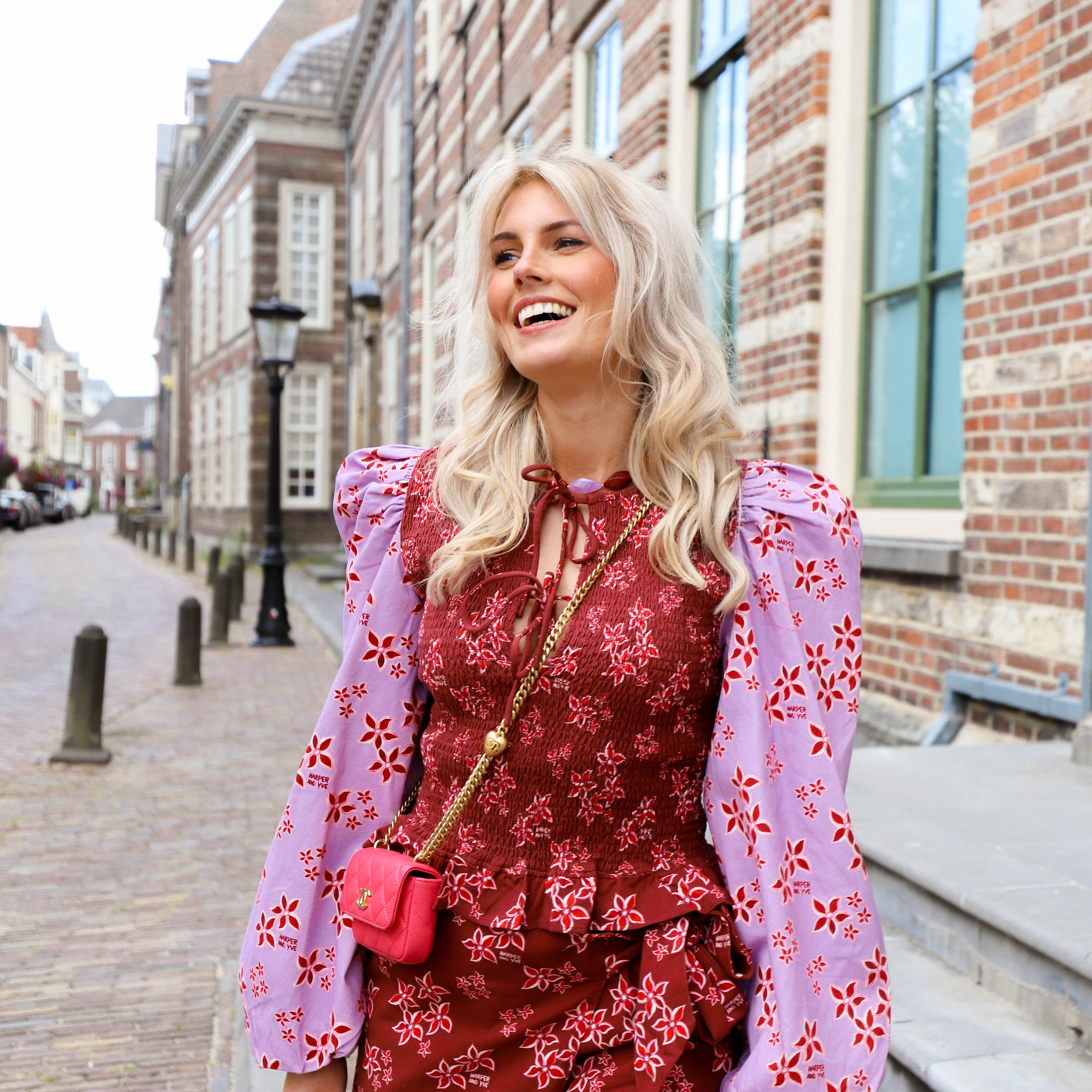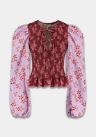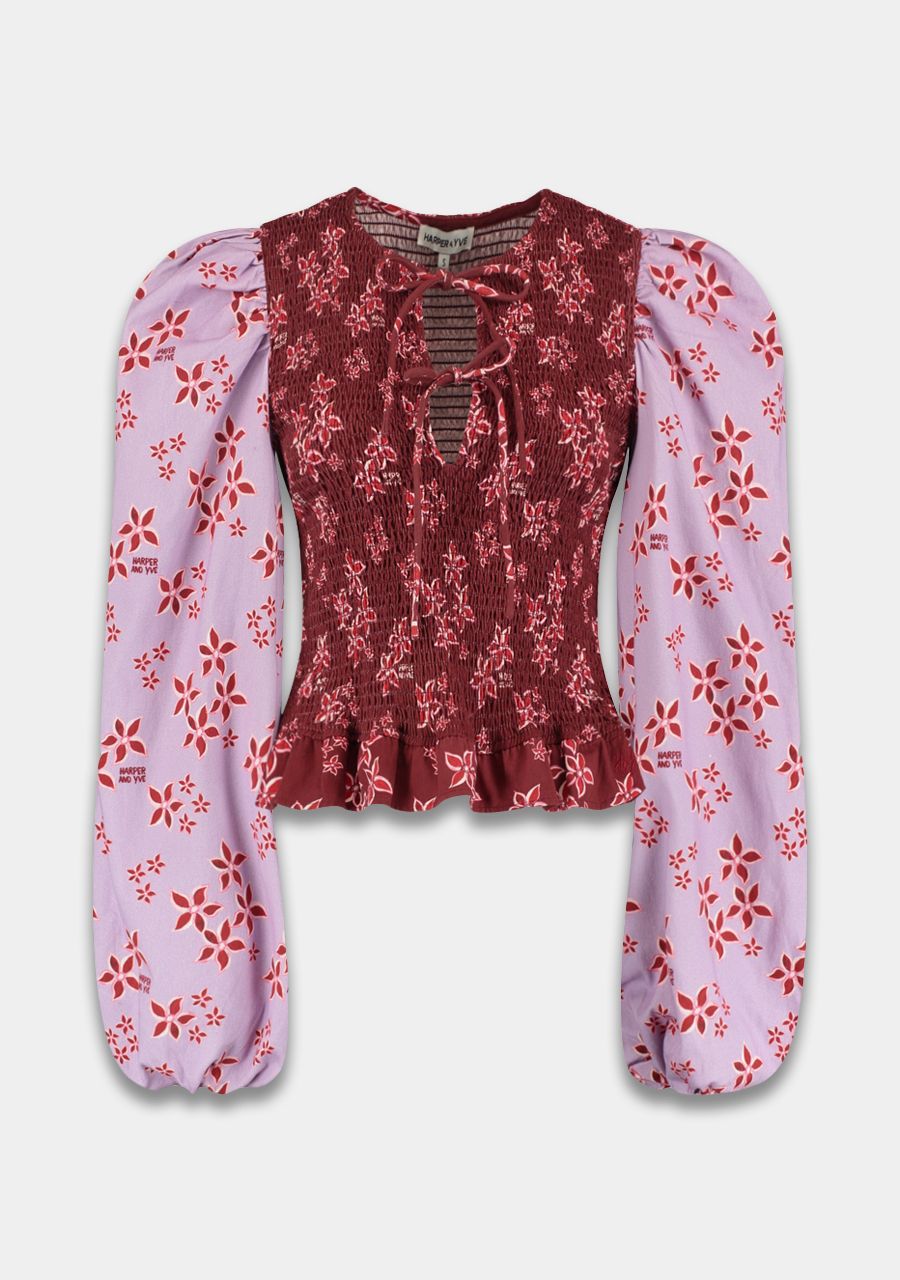 De ELIN top is een luchtige blouse met subtiele pofmouwen en een vrouwelijke ronde hals. De print PINK STAR WINE BERRY combineert diepe bessentinten met een speelse grafische sterprint. Gemaakt van een gladde stof die soepel valt, en afgewerkt met fijne manchetten en een keyhole-sluiting achter.
