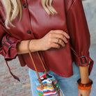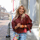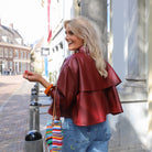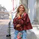 Geef je outfit een stoere, trendy touch met ons PU jack burgundy. Dit korte jack heeft een relaxte pasvorm en is gemaakt van een zacht kunstleer. Het jack is afgewerkt met een klassieke kraag en heeft een knoopsluiting aan de voorkant. De mouwen zijn voorzien van een strikdetail, wat zorgt voor een unieke twist.