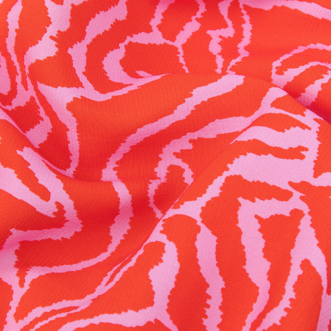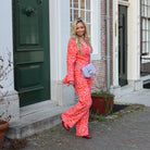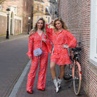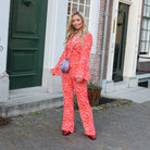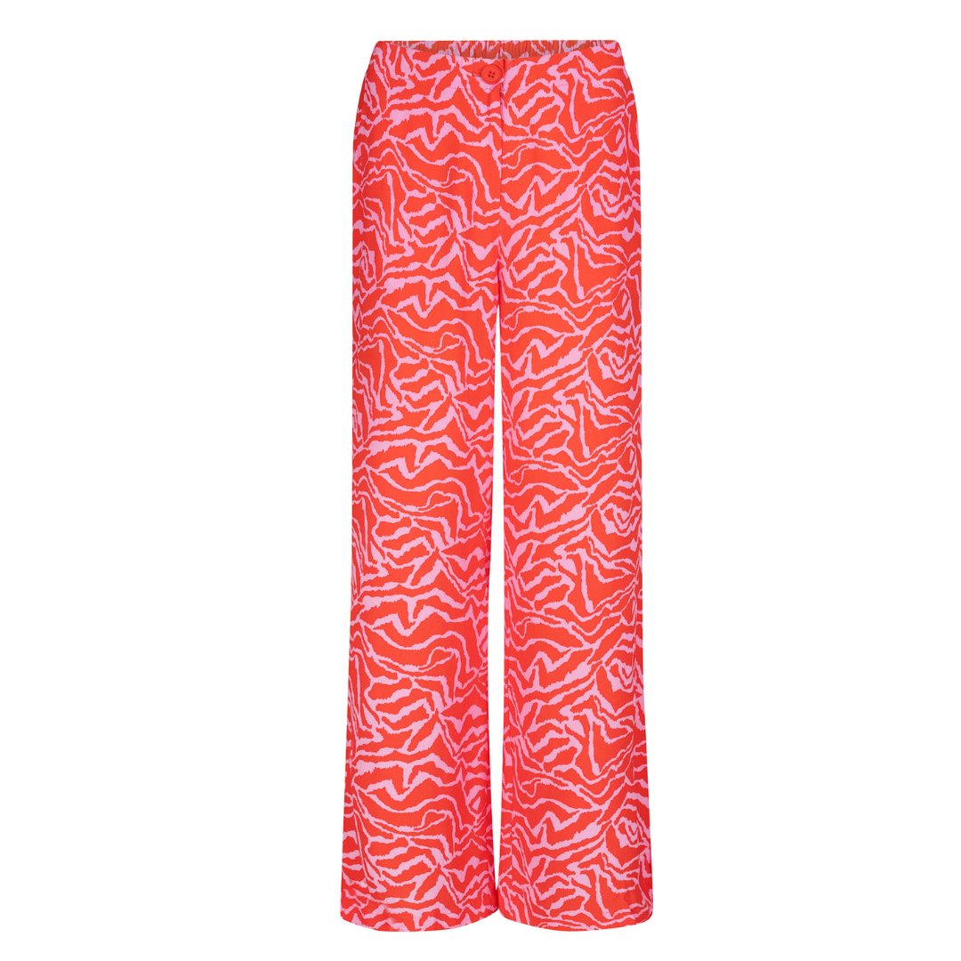 Pants Jenn is a nice pair of printed trousers with wide, straight legs. The pants have side pockets on the front and faux pockets on the back. The trousers close with a button and zipper and have an elastic waistband at the back. Nice to combine with the matching blouse.