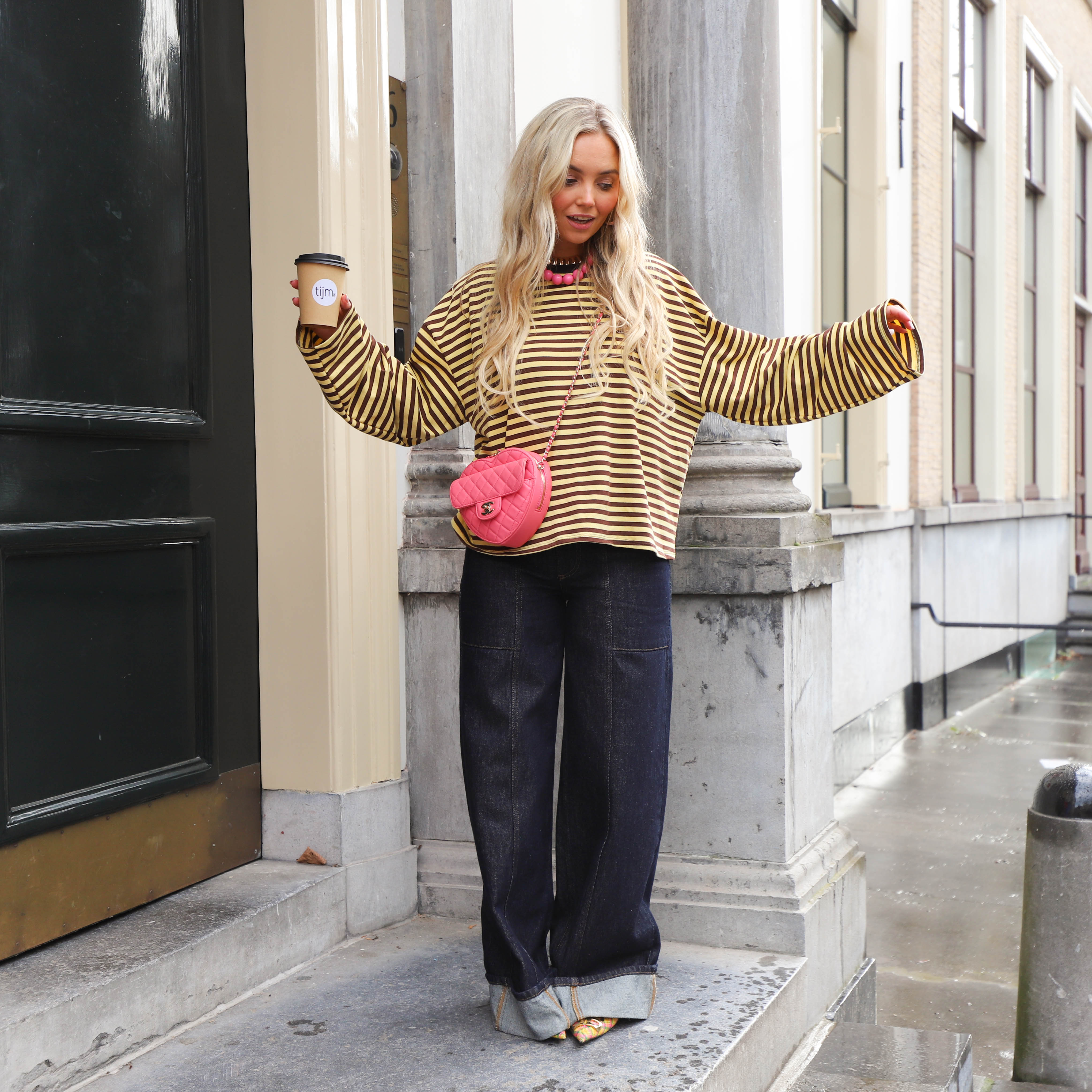 Deze Wave Streep Top is een comfy en unieke basic voor je dagelijkse look. De top is gemaakt van een zachte, soepele stof en heeft een opvallend horizontaal golf-streepdessin in diverse contrasterende kleuren.