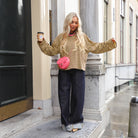 De top heeft een ruime, oversized pasvorm, een ronde hals en lange mouwen. Leuk om te combineren met een gilet.