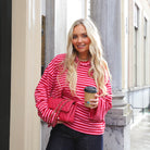 Deze Wave Streep Top is een comfy en unieke basic voor je dagelijkse look. De top is gemaakt van een zachte, soepele stof en heeft een opvallend horizontaal golf-streepdessin in diverse contrasterende kleuren.