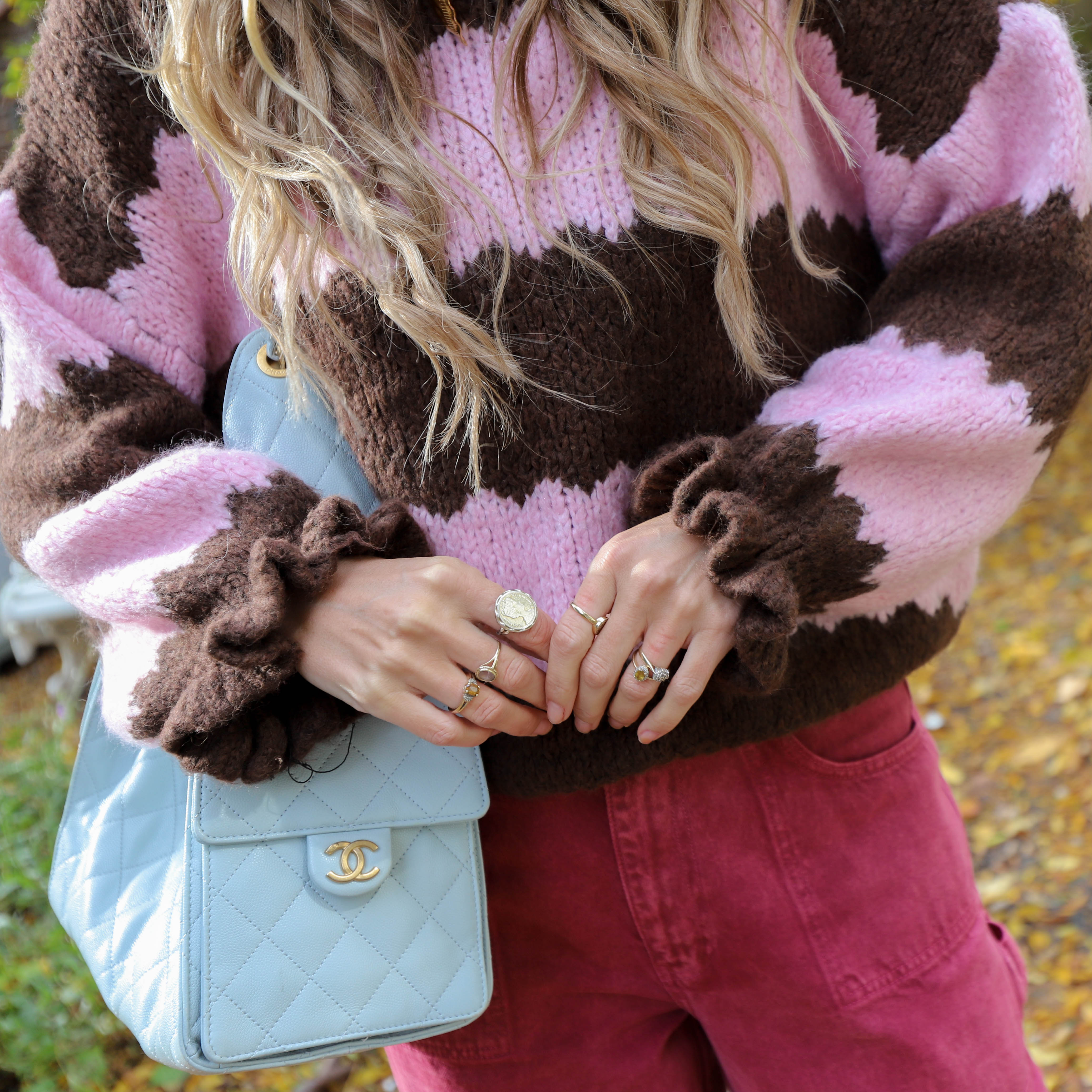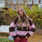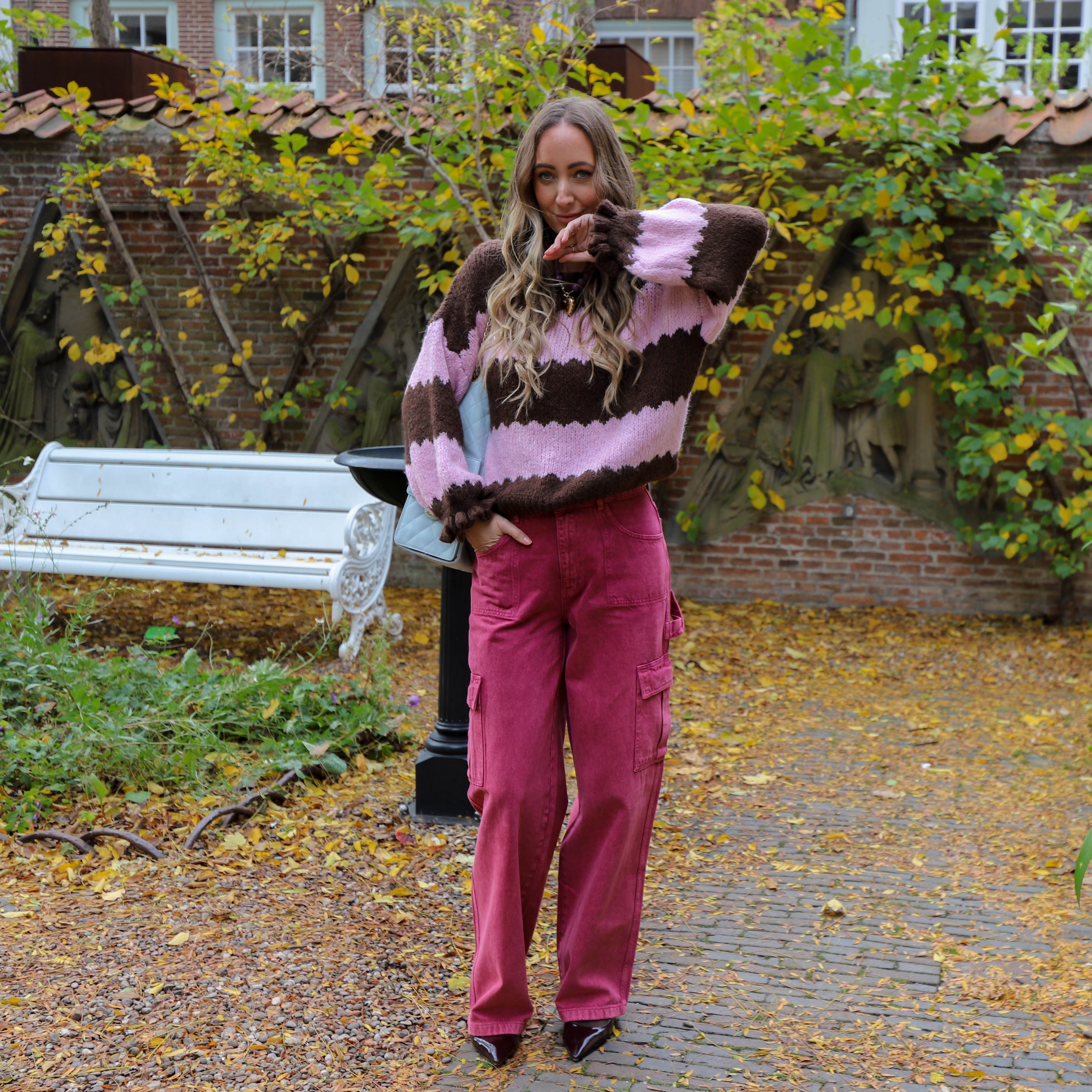 Deze Loa Trui is een heerlijk zachte, grofgebreide trui met een speels kleurcontrast. De trui heeft een opvallend horizontaal streepdessin in een warme combinatie van chocoladebruin en zachtroze. De oversized pasvorm, de ronde hals en de fluffy knit maken dit de perfecte trui voor de koude dagen. Een charmant detail zijn de gerimpelde, elastische boorden aan de mouwen die zorgen voor een vrouwelijke touch.