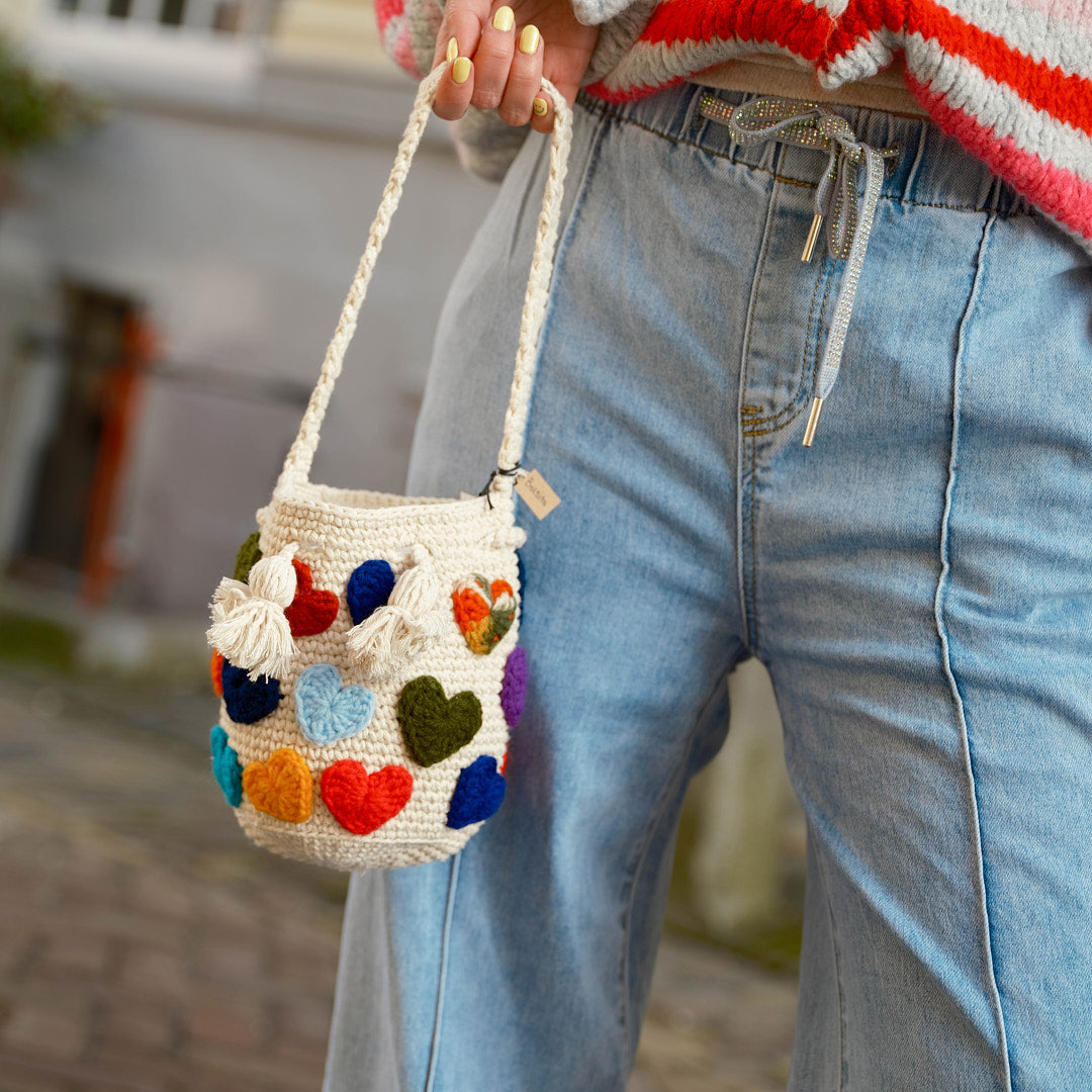 Dit super schattige tasje van Maison Badigo maakt je hele outfit af. Het tasje is te sluiten met de koordjes en kan schuin worden gedragen. Handgemaakt in Peru.