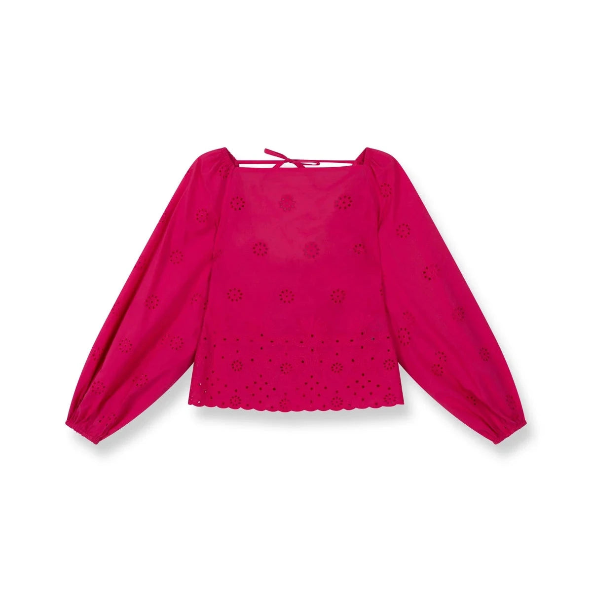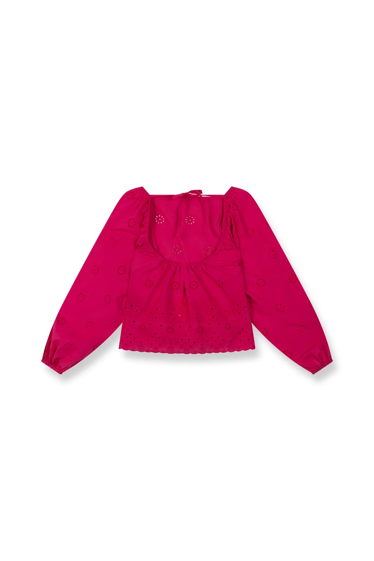 Deze fuchsia blouse van Refined Department is een opvallende en trendy toevoeging aan je garderobe. De blouse is gemaakt van een ademende katoenen stof en heeft pofmouwen voor een extra touch. De open rug met banddetail maakt het een uniek stuk.