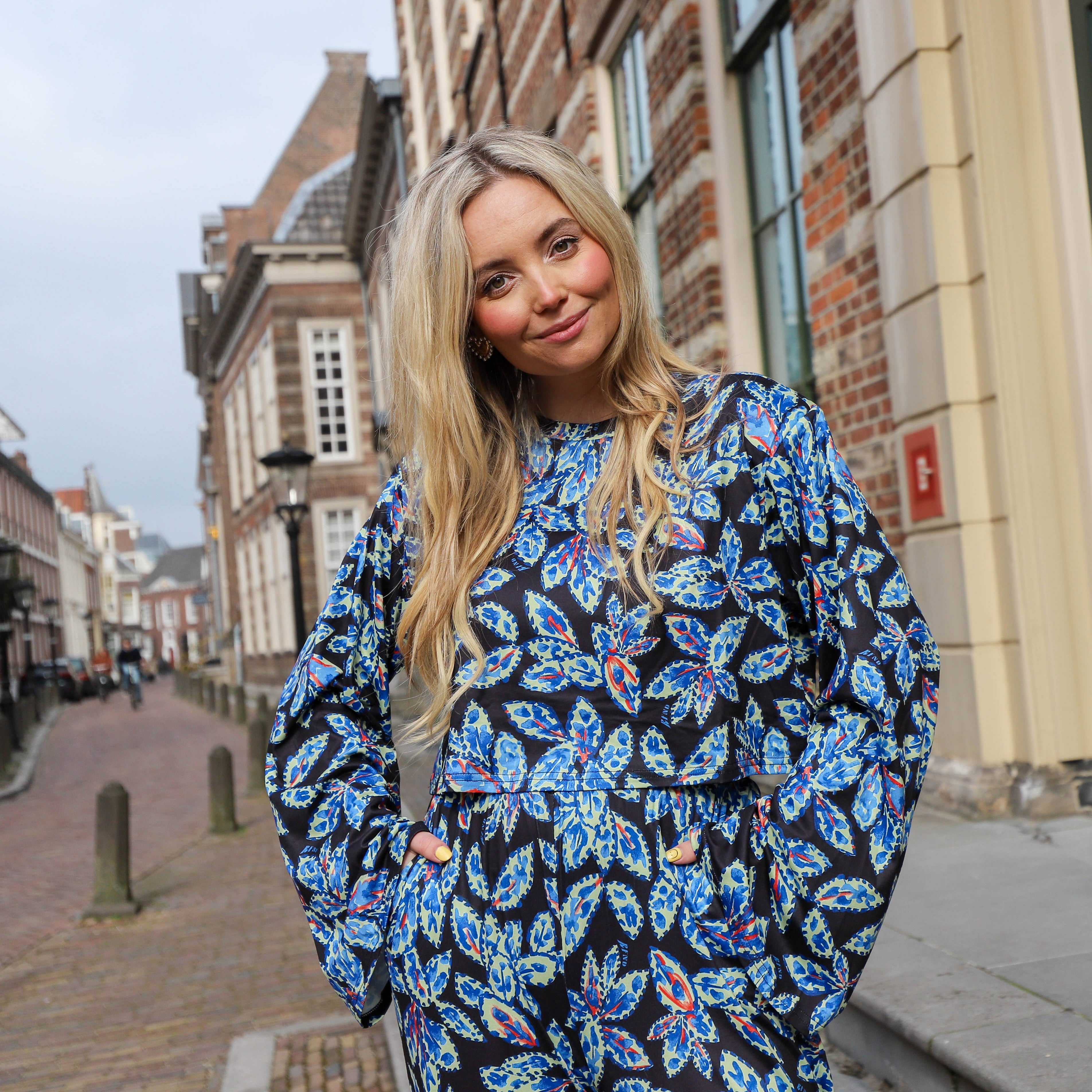 Deze crop top met lange mouwen is voorzien van een kleurrijke bloemenprint over het gehele oppervlak. De top is gemaakt van een stretchbare jersey kwaliteit en heeft een normale pasvorm, dus we raden je aan je gebruikelijke maat te bestellen. Het ontwerp wordt gekenmerkt door uitlopende mouwen en schoudervullingen. Combineer met onze NOVA broek om je set compleet te maken!