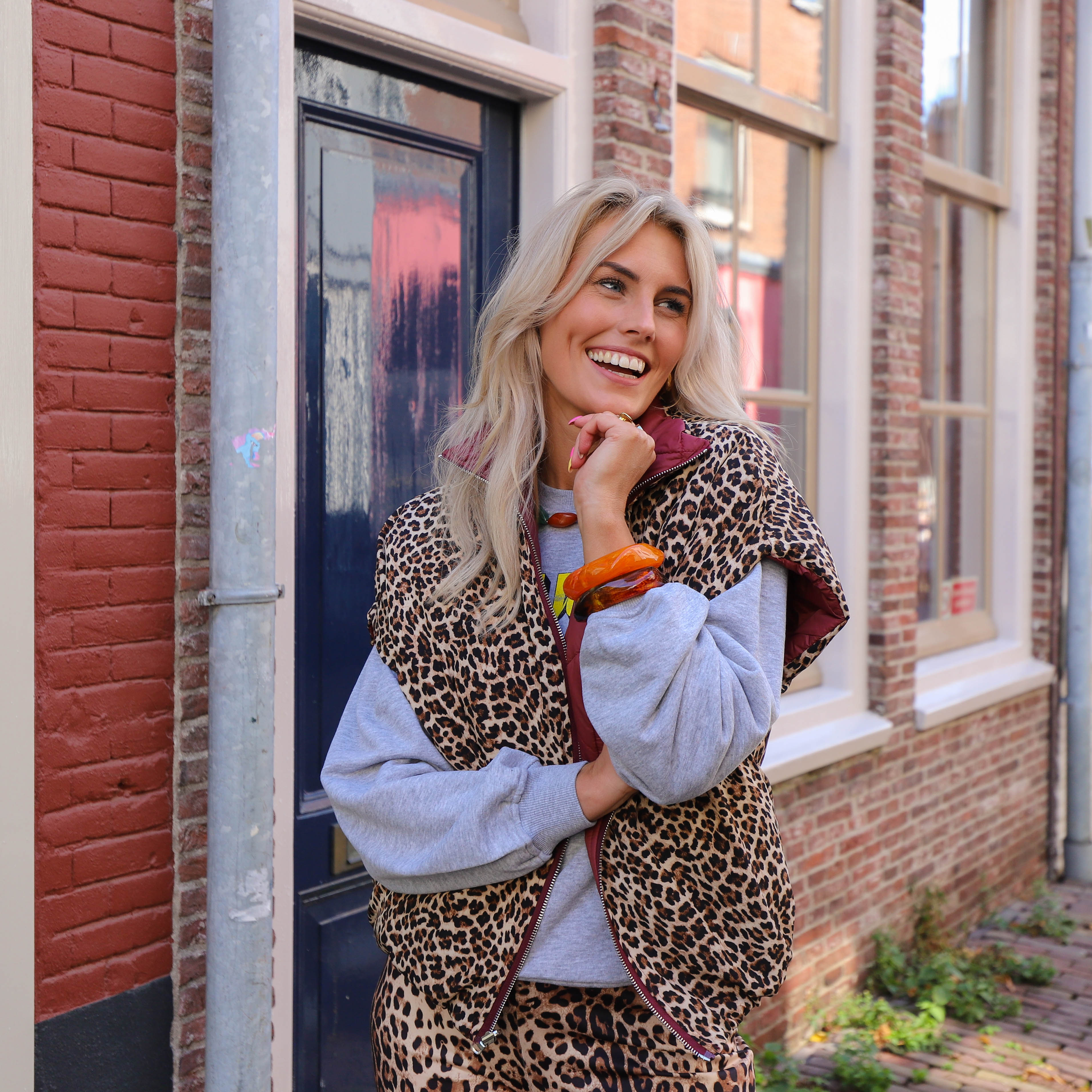 Geef je outfit een boost met onze reversible body warmer Leo in een opvallende Burgundy kleur. Dit gewatteerde vest is aan beide zijden draagbaar: de ene zijde in een opvallende, effen kleur en de andere zijde met een trendy leopard print. De hoge kraag met leopard print en de zilveren ritssluiting maken het vest extra stijlvol. De bodywarmer is perfect om te combineren over een trui of longsleeve.
