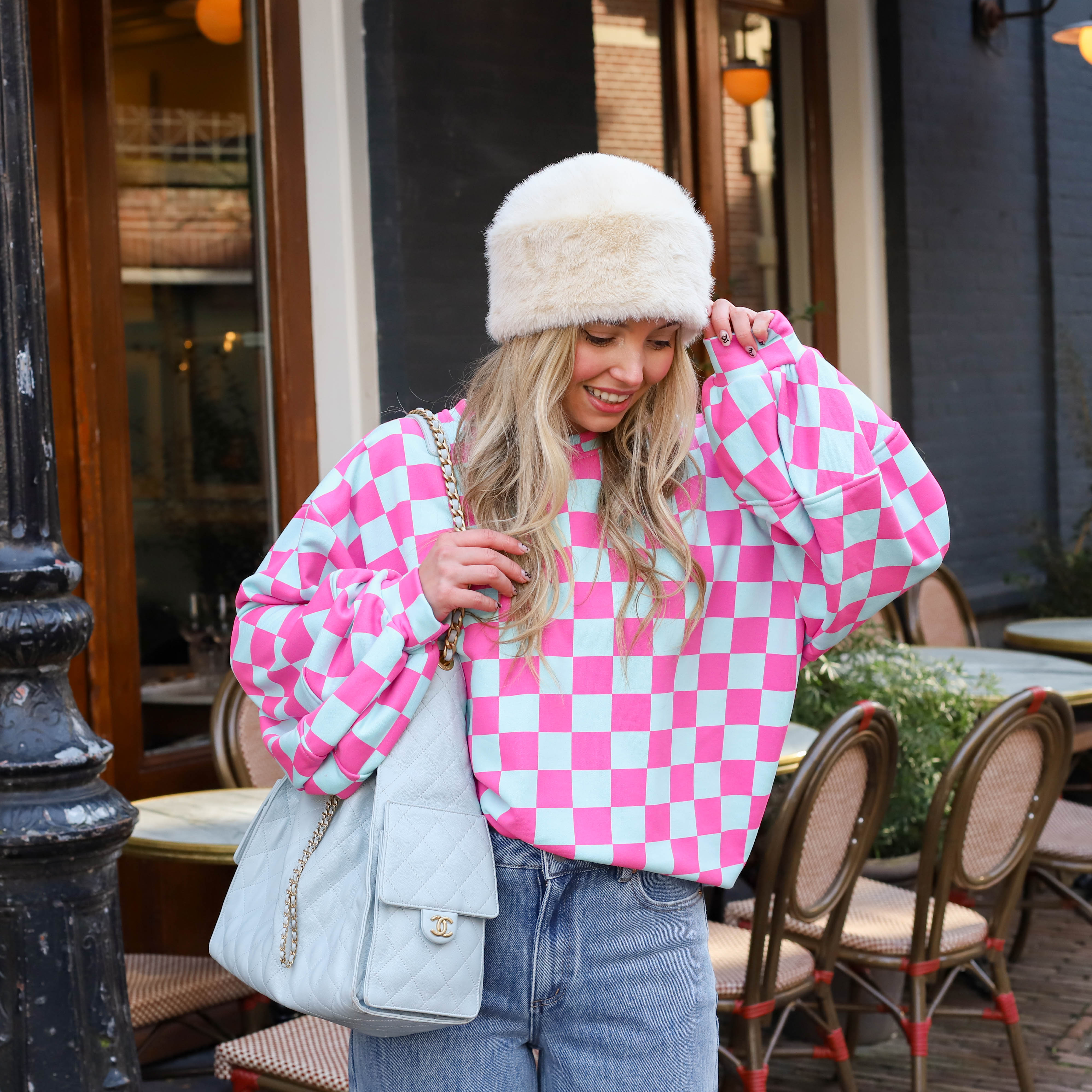 Rosa trui roze turquoise
