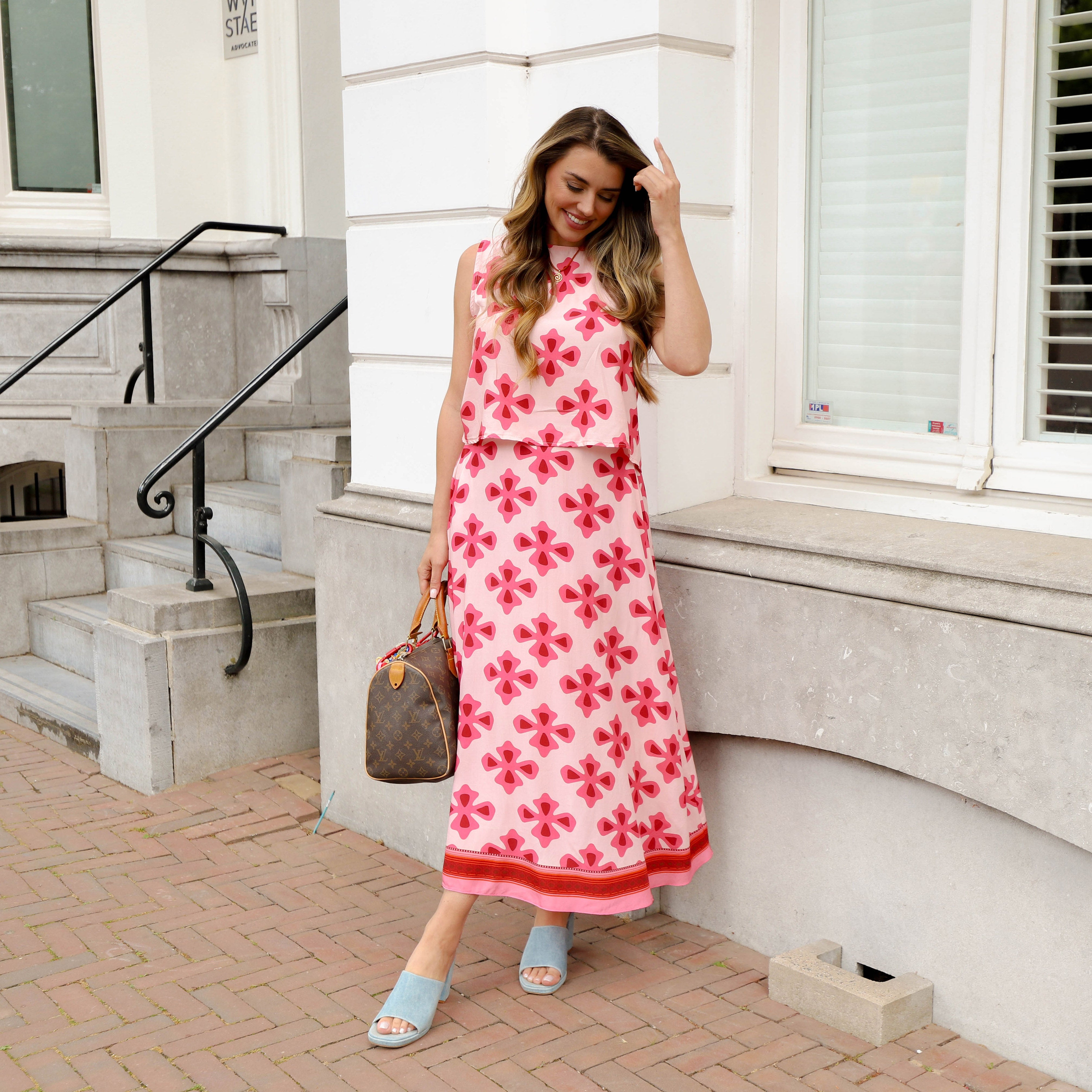Deze vrolijke 'summer top' is een perfecte match voor de bijpassende rok of om je favoriete zomeroutfit compleet te maken. De top heeft een zachte roze basis met een opvallende all-over print van bloemen.